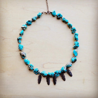 **Blue Turquoise Collar Necklace w/ Feather Pendants 259m