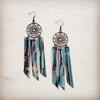 **Dream Catcher Earrings w/ Leather Fringe Turquoise Chateau 200ab