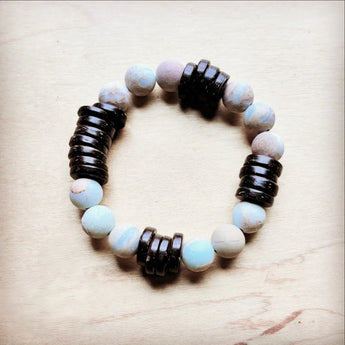**Frosted Aqua Terra and Wood Stretch Bracelet (808y)