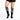 Three thick white stripes of varying widths span around the upper calf on the black backdrop of these vintage-vibe compression socks.