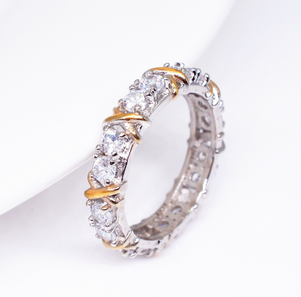 Gold-plated Color Separation Inlaid Zircon Ring For Women