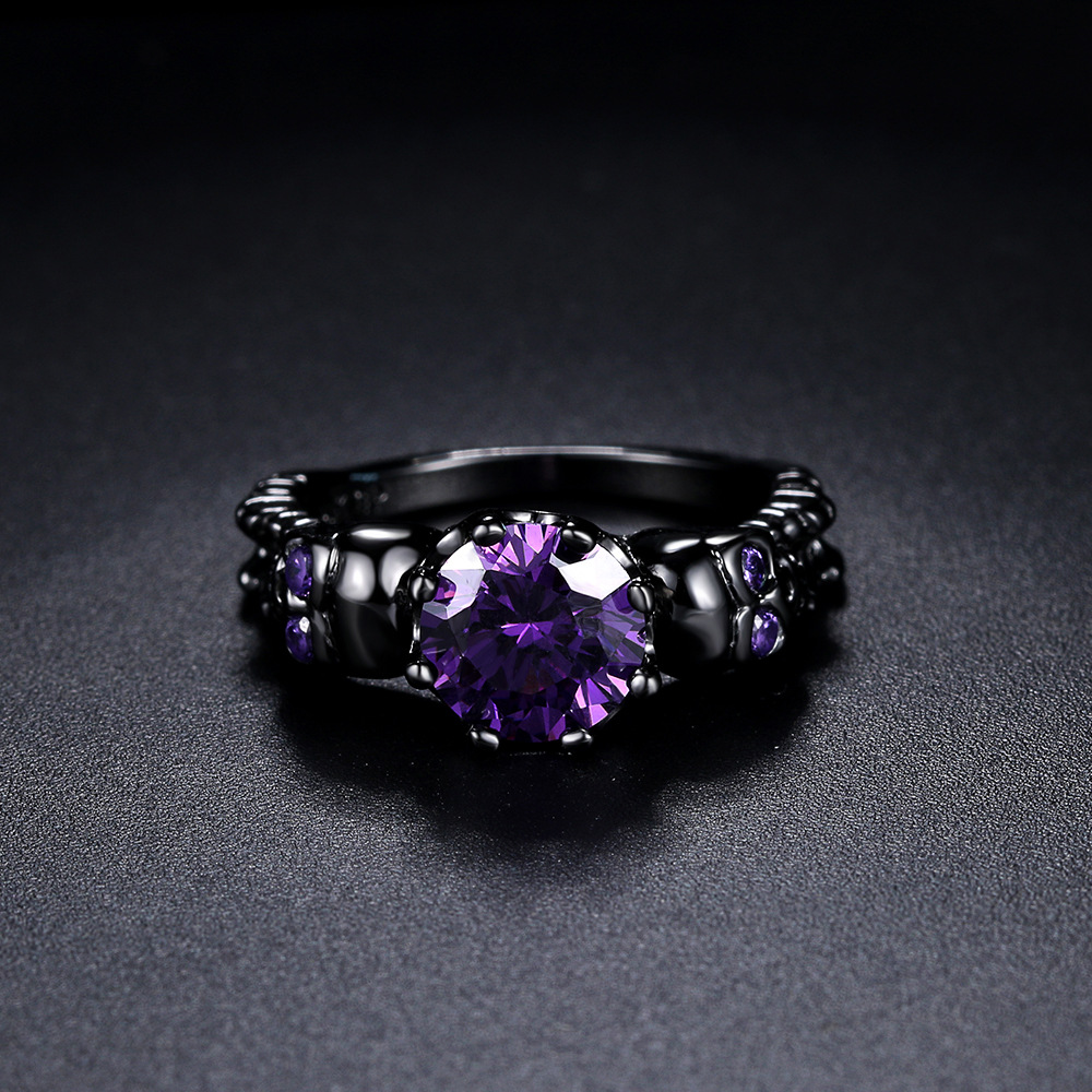 Purple Zircon Vintage Black Gold Skull Women's Ring