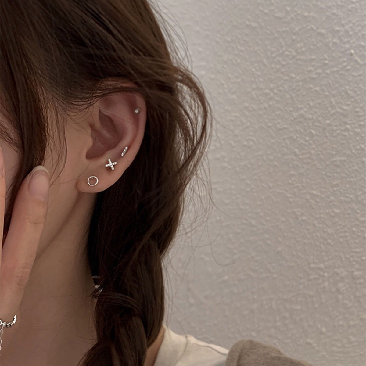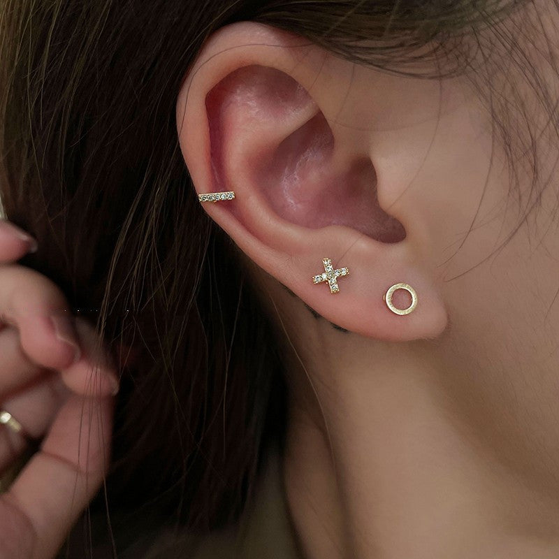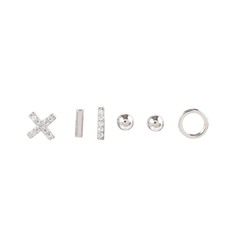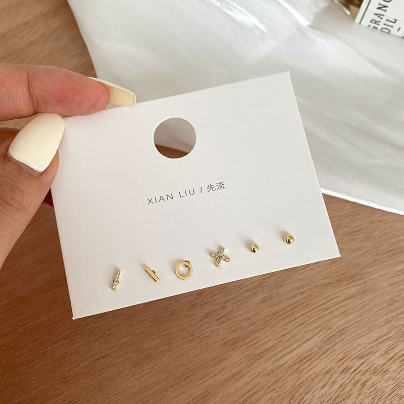 925 Silver Post Asymmetric Petite Mini Six Exquisite Combination Stud Earrings