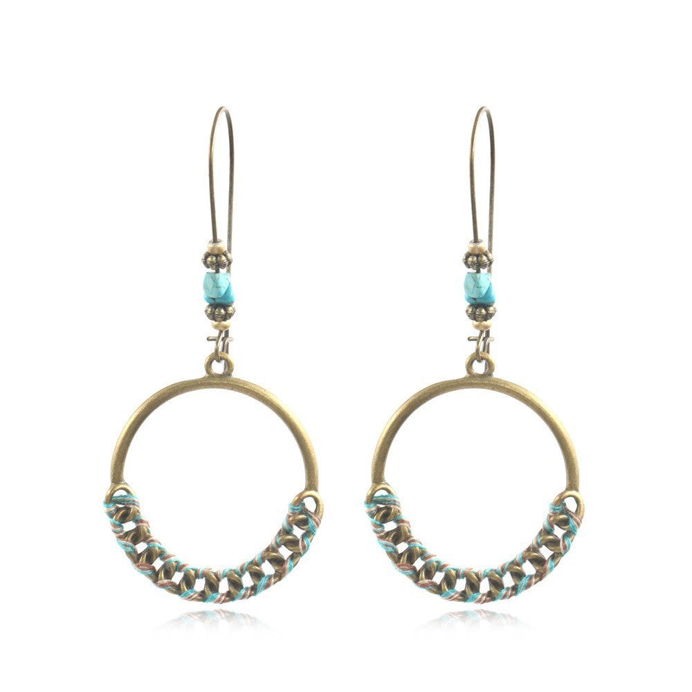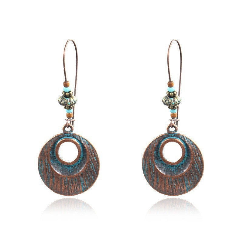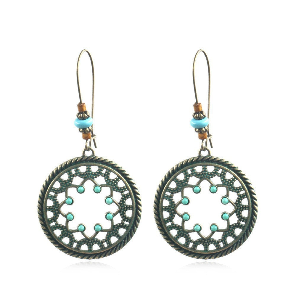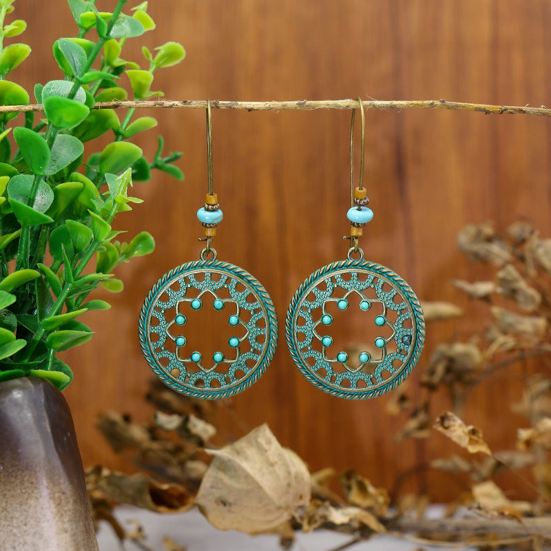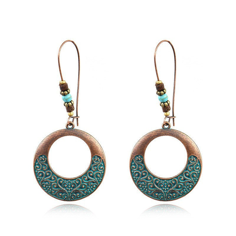 Ancient Bronze Alloy Carved Bohemian Retro Element Earrings