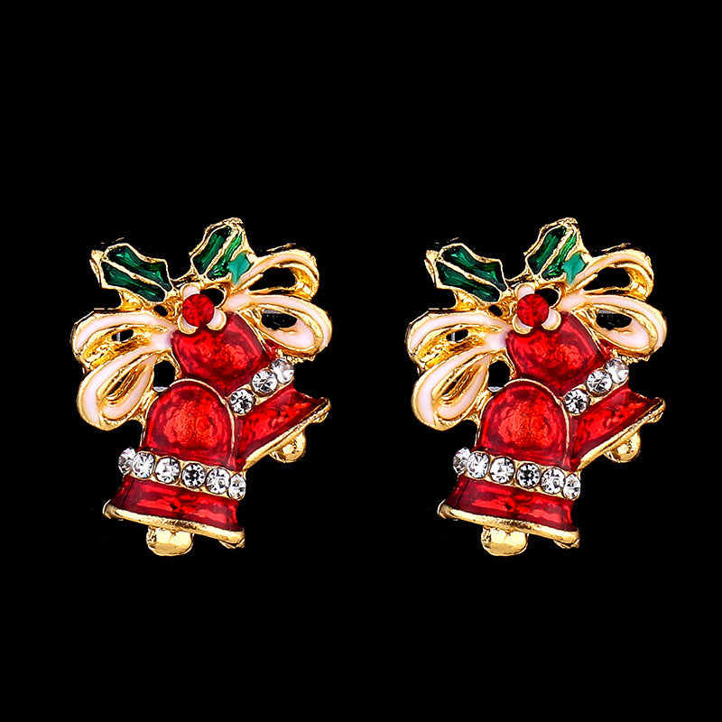 Christmas Gift Dripping Oil Bow Bell Earrings