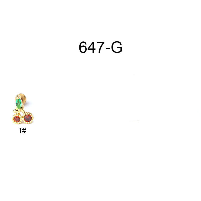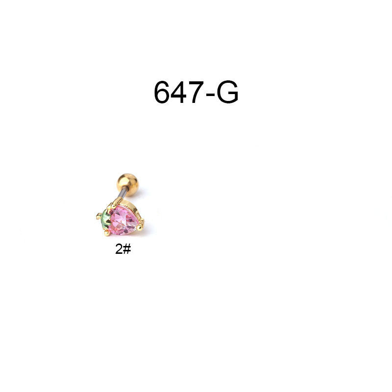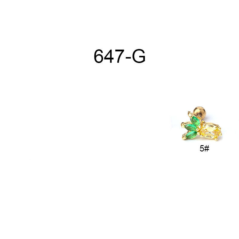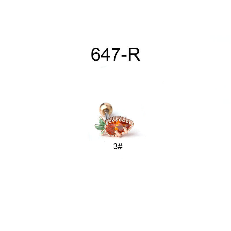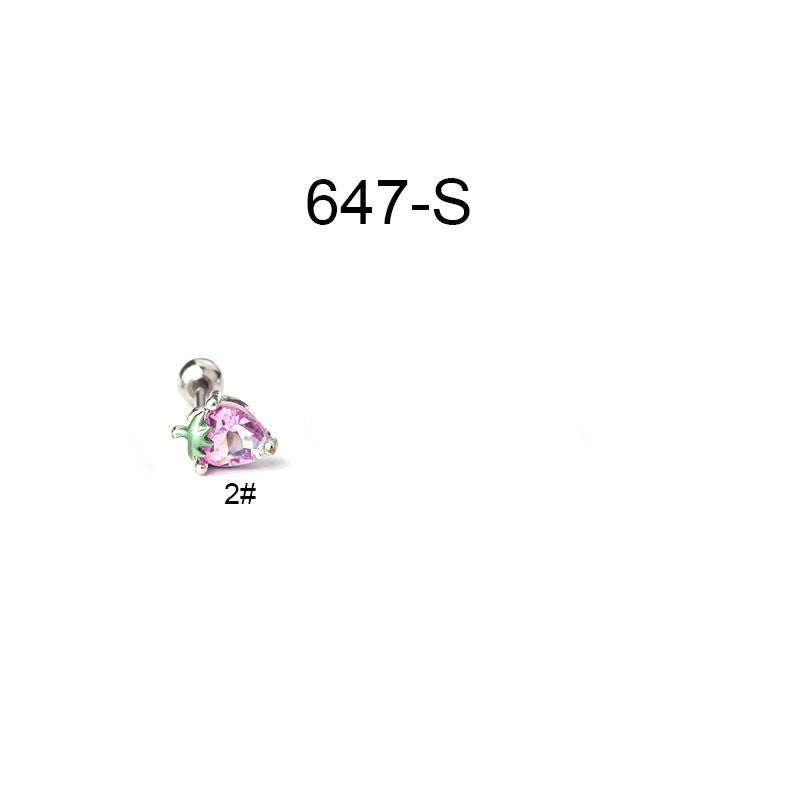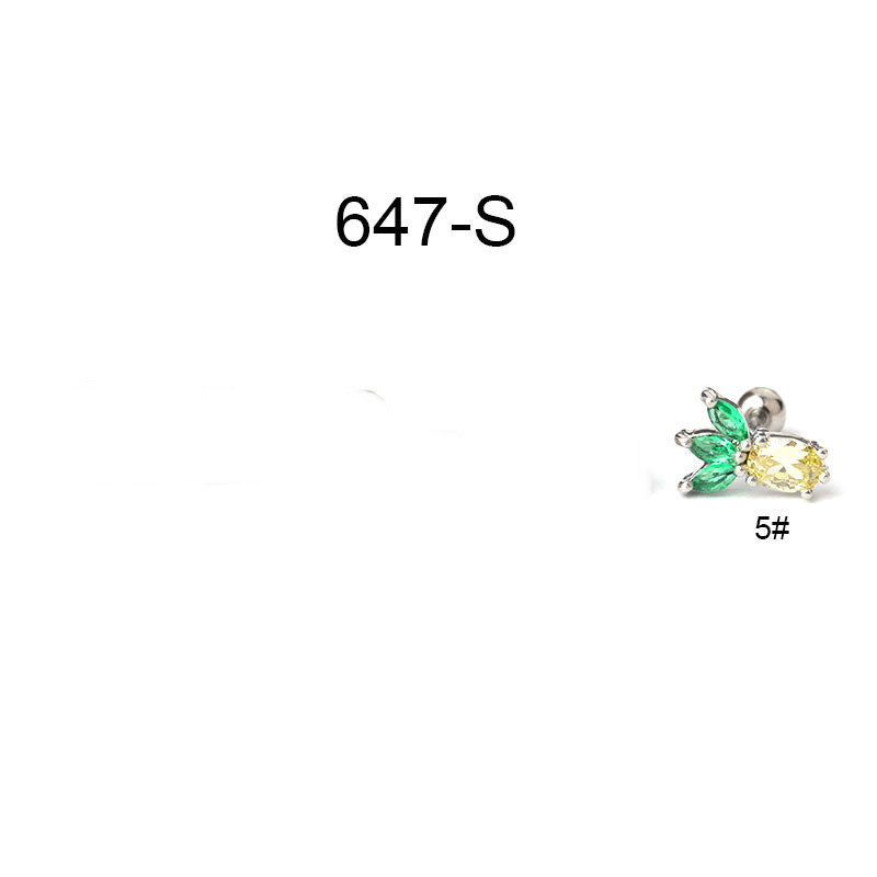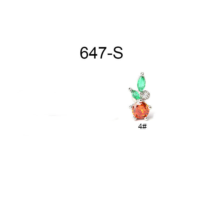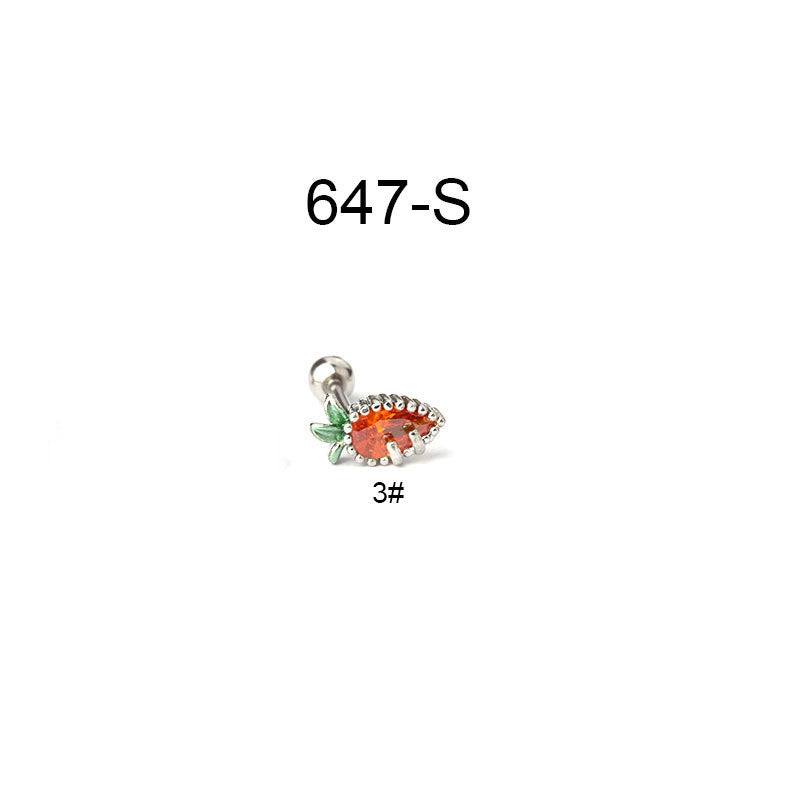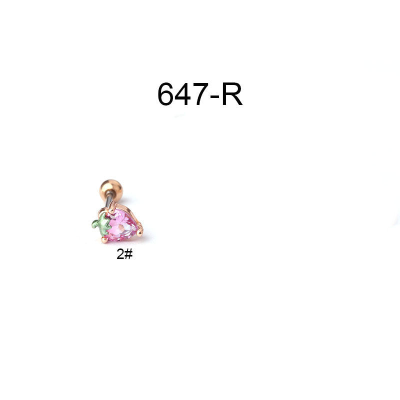 Creative Stainless Steel Thin Rod Fruit Zircon Stud Earrings