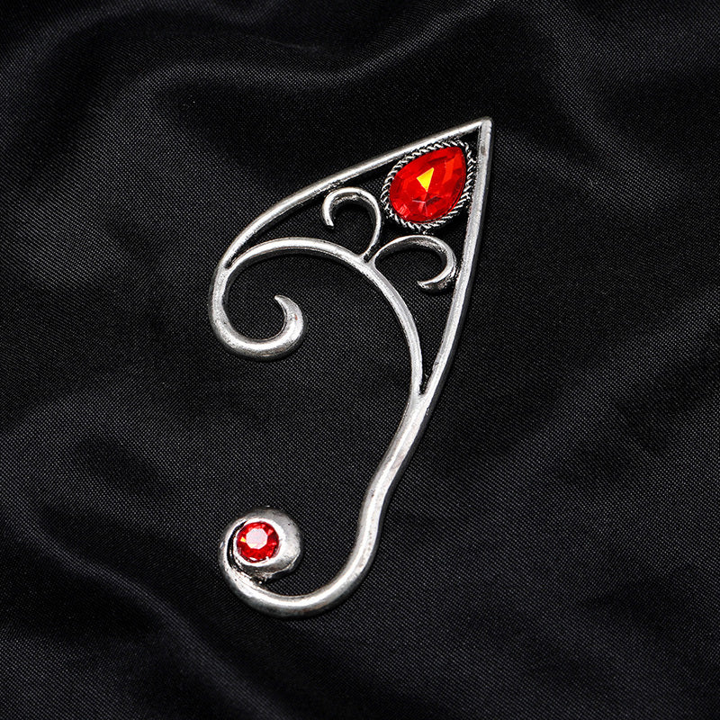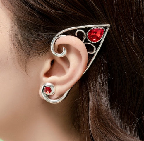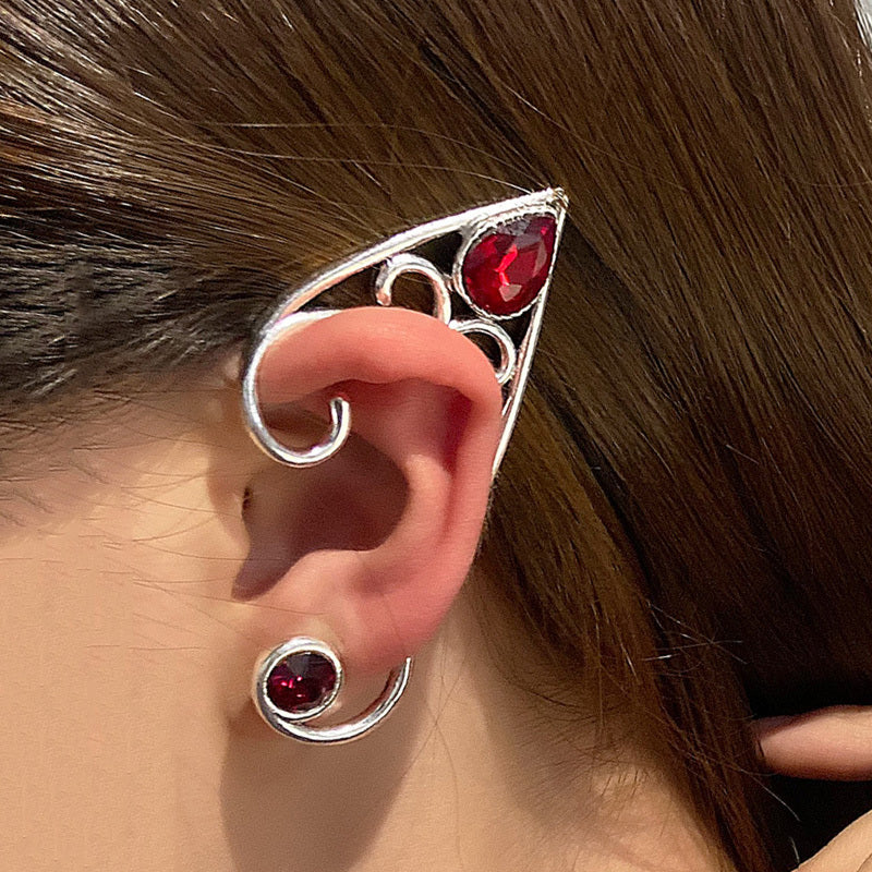 Fairy Ear Cuff Earring Red Crystal Stone Elf Ear Clip Earrings