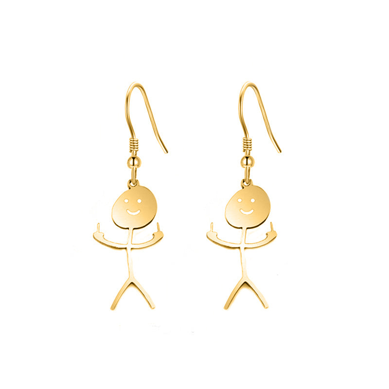 Funny Doodle Dangle Earrings Smiley Stick Figure Hand Gesture Middle Finger Statement Earrings For Women