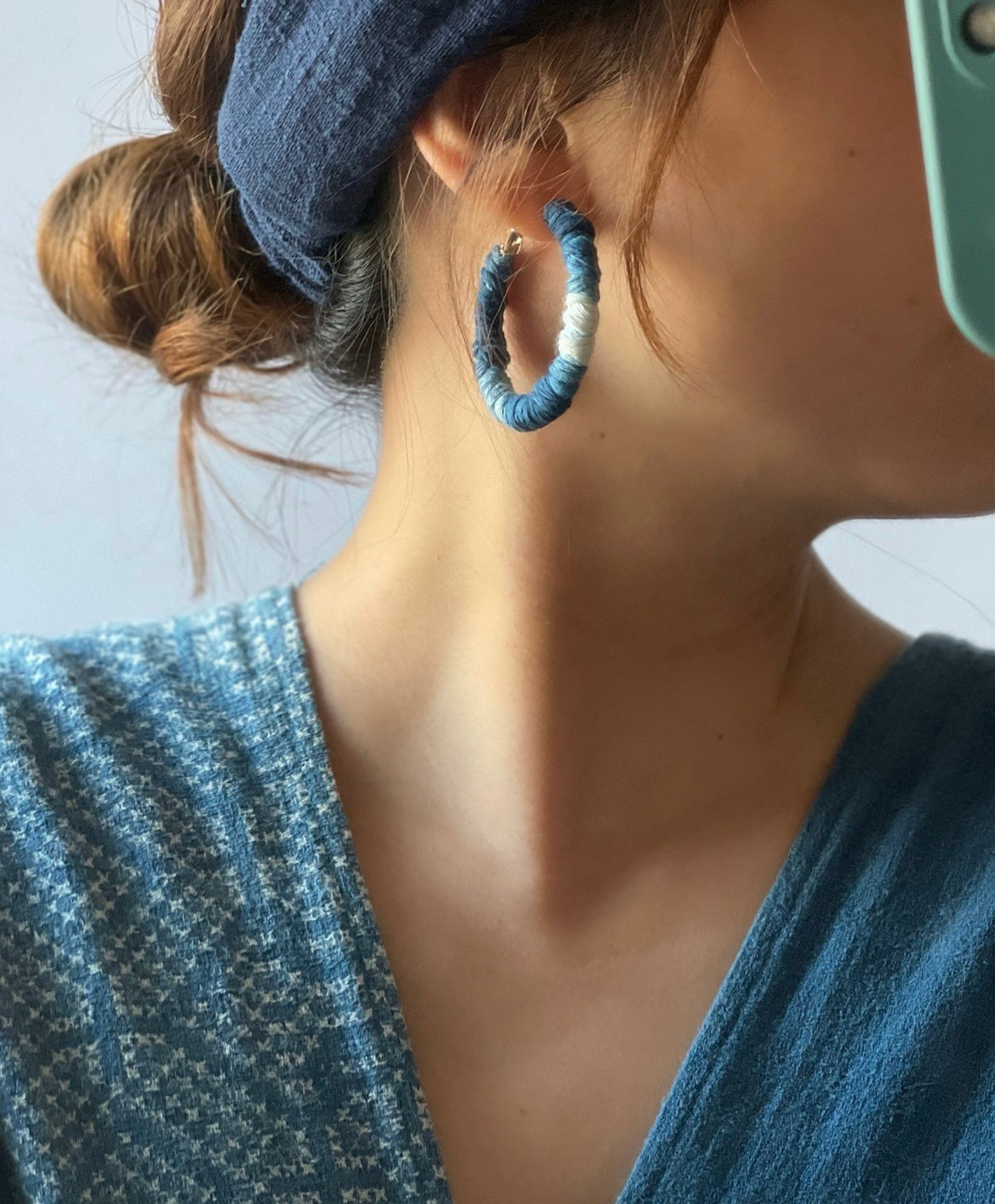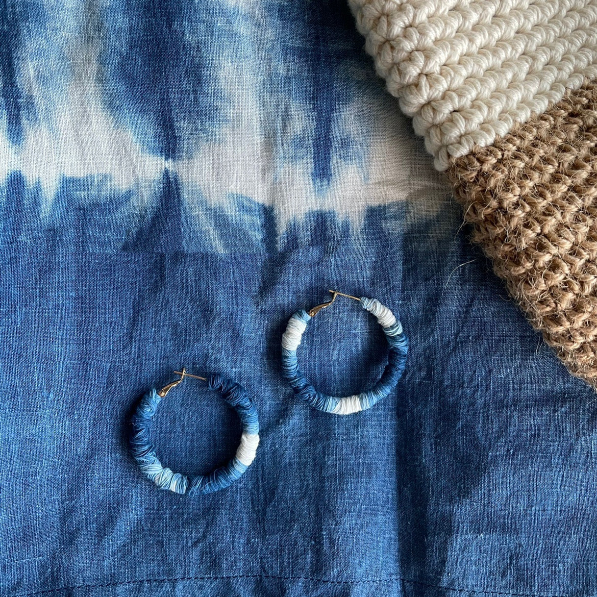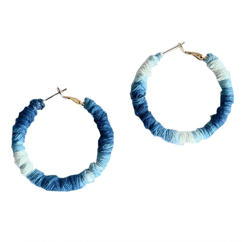 Indigo-dyed Plant-dyed Thread Circle Niche Earrings