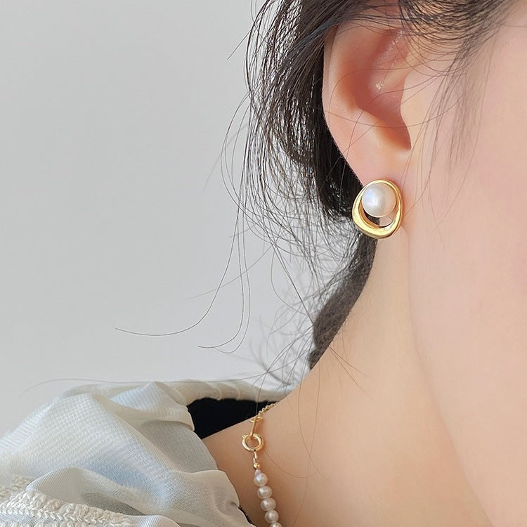 Pearl Geometric Ear Studs Light Luxury High-grade Earrings