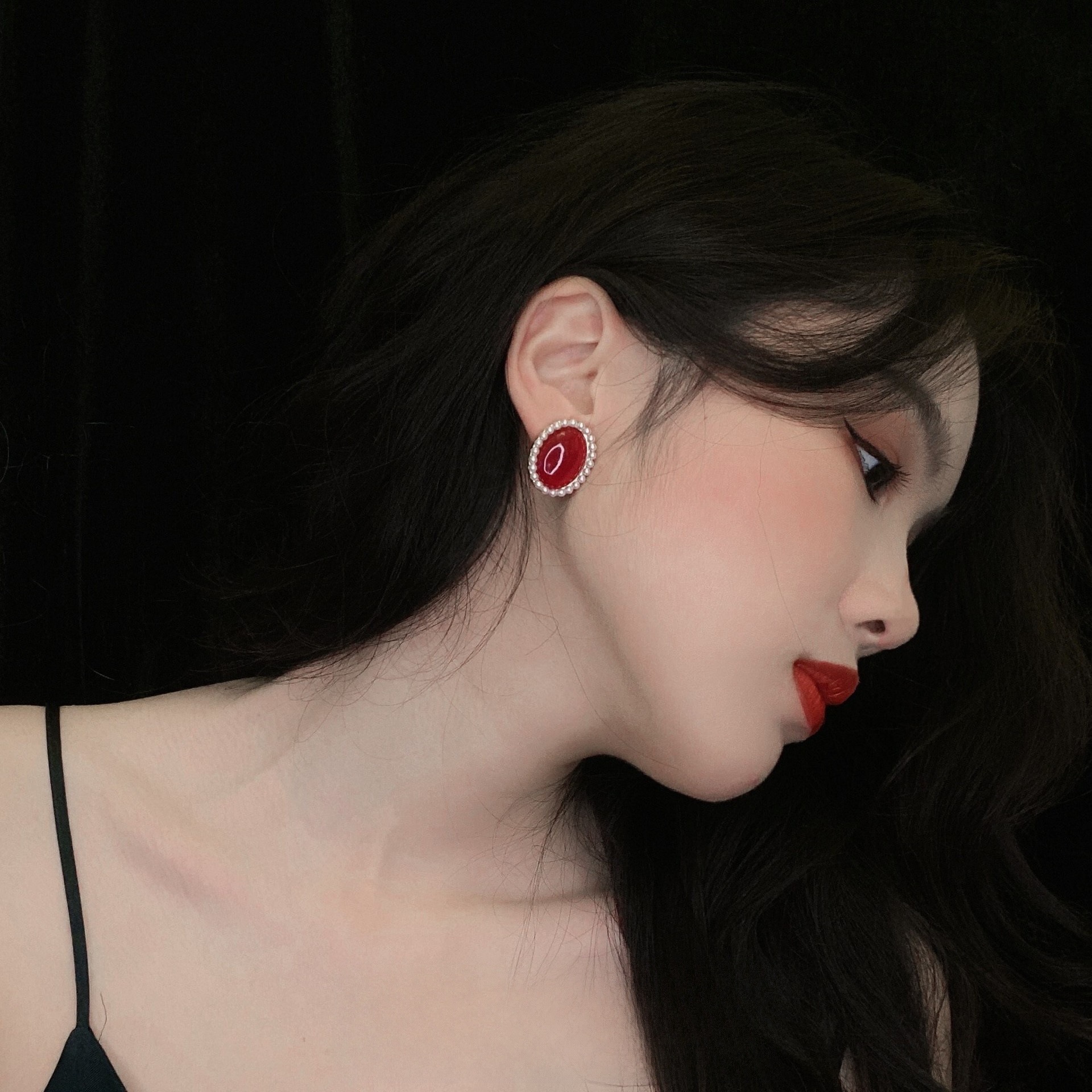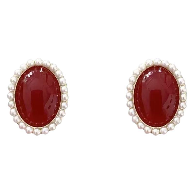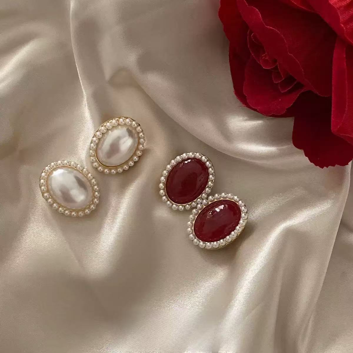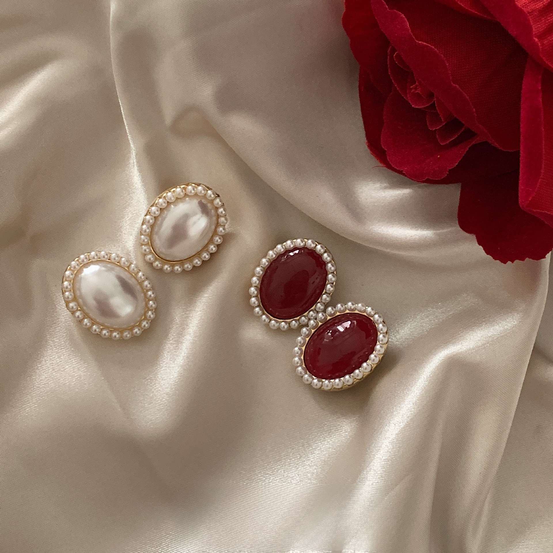 Color: oval pearl white (ear studs), Ruby Pearl (ear studs)