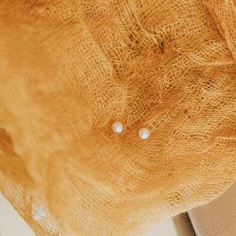 The Sailor Pearl Studs are dainty earrings made of high quality, hypoallergenic gold vermeil (gold fill over sterling silver). Genuine high quality freshwater pearls. Pearls measure 3-4mm. Backing is gold metal enclosed in resin coating for non-slip security.