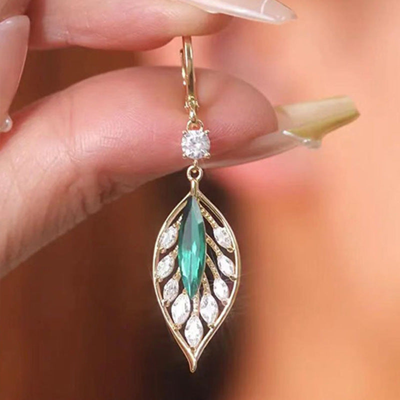Color: zircon green leaf earrings