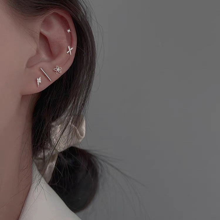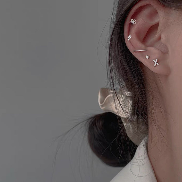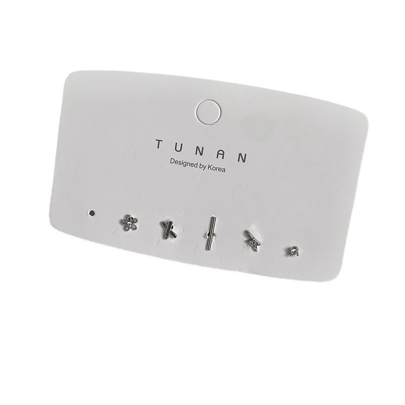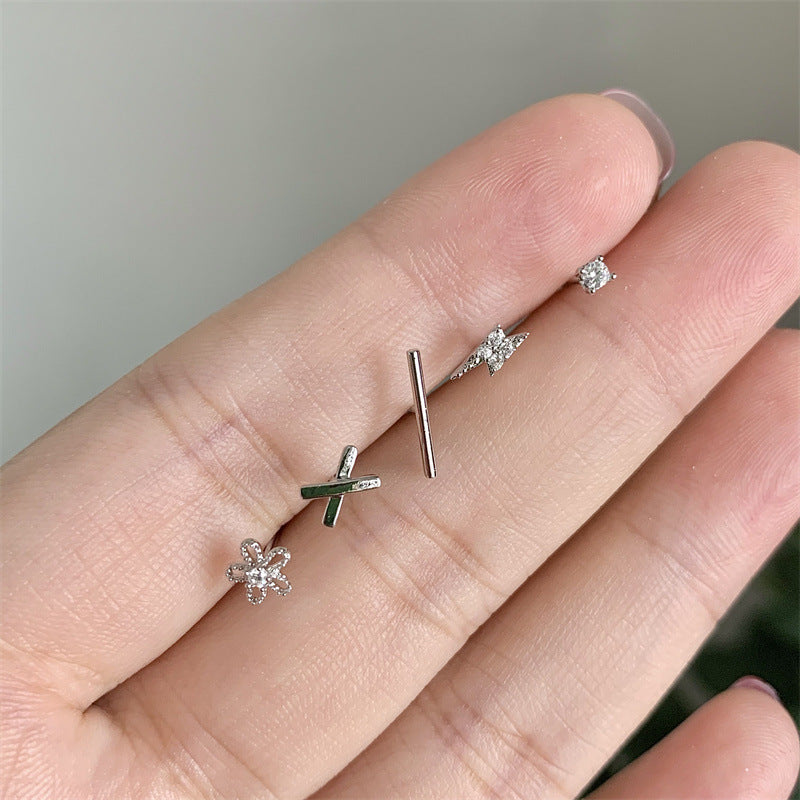 Versatile Simple Small Flower Geometric Zircon Stud Earrings Combination