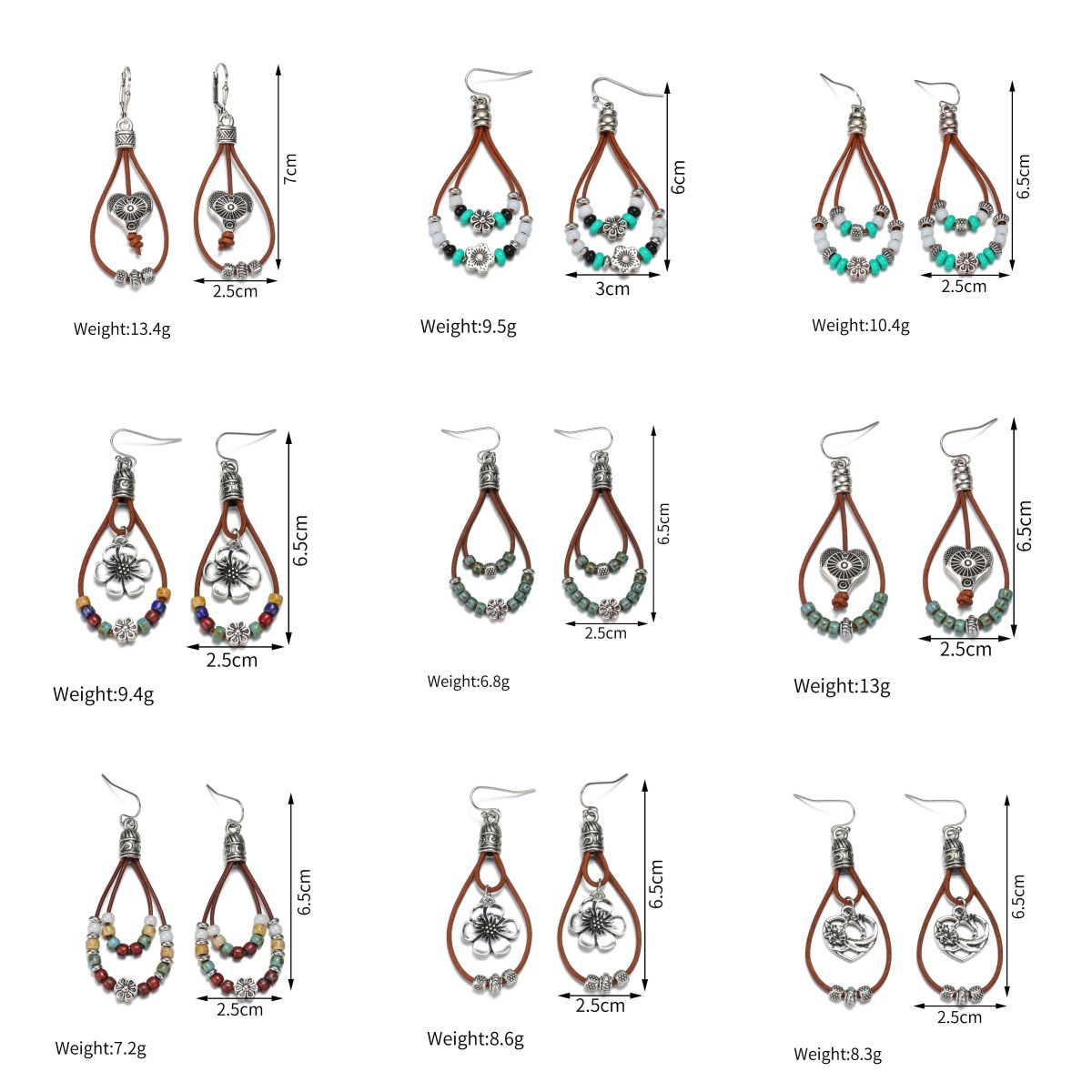 Vintage Earrings Ethnic Style Antique Silver Flower Turquoise Rope Pendant Women's Jewelry