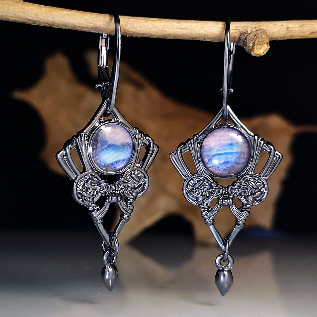 Vintage Geometric Long Turquoise Moonstone Drop Earrings