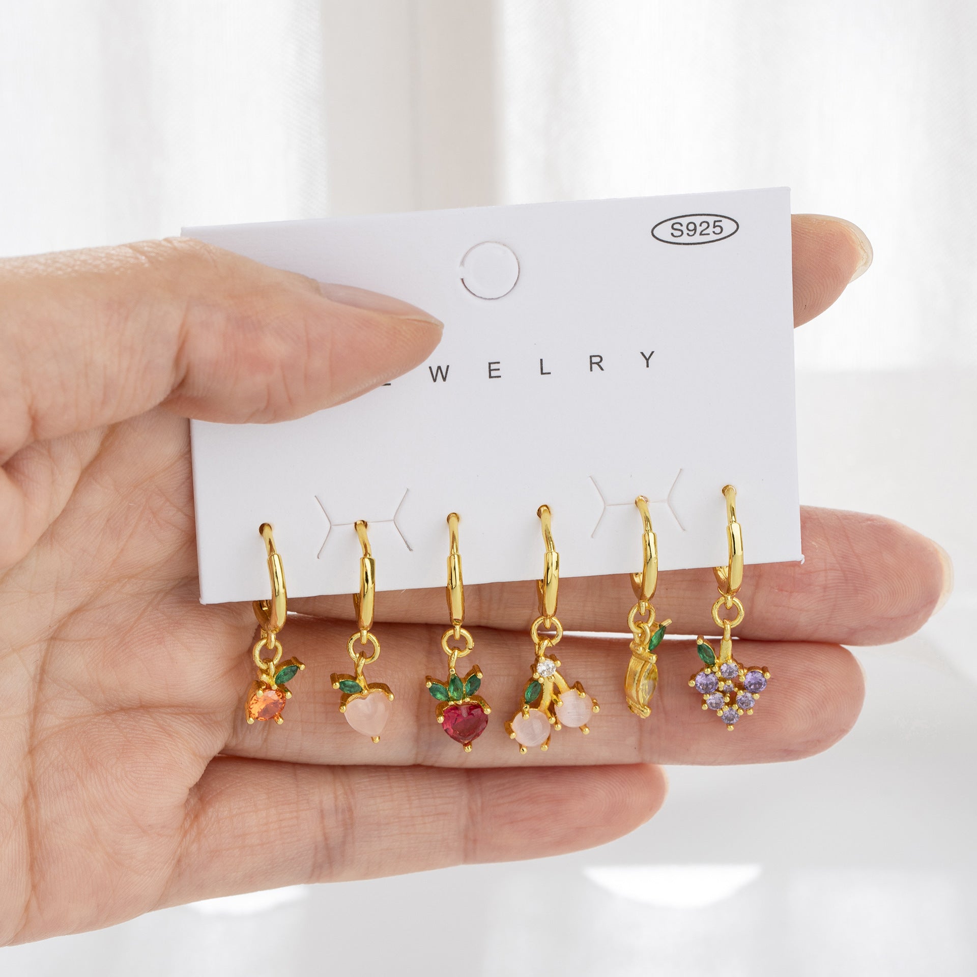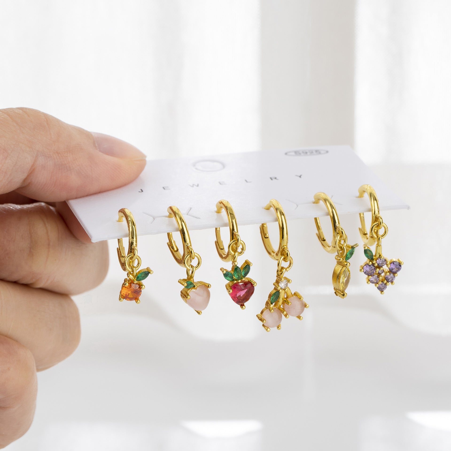 Women's Fashion Grape Lemonade Peach Fruit Center Earrings Set Of 6