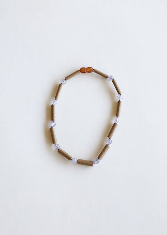This beautiful necklace is handmade with all natural hazelwood and raw amethyst beads. The way it works is the hazelwood actually absorbs the extra acid and while it does, the wood gradually turns a darker brown color and peels away. In order for the body to be at its best healing level, it should be slightly more alkaline. When your body is higher in acidic pH, you are susceptible to more illnesses and pains. By helping it be more alkaline, it is better able to filter out toxins and help the body combat whatever may come its way...