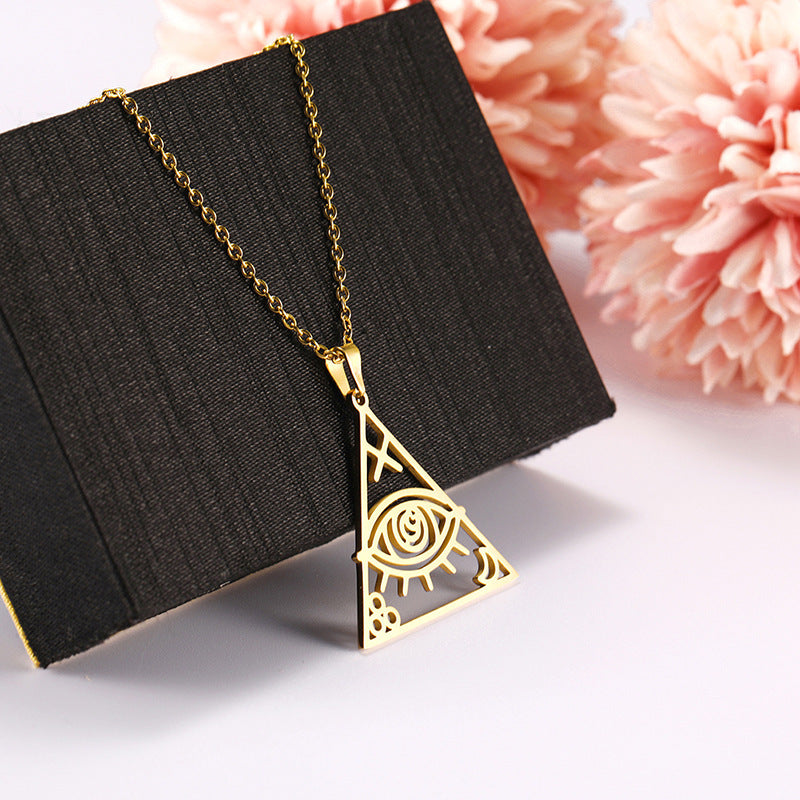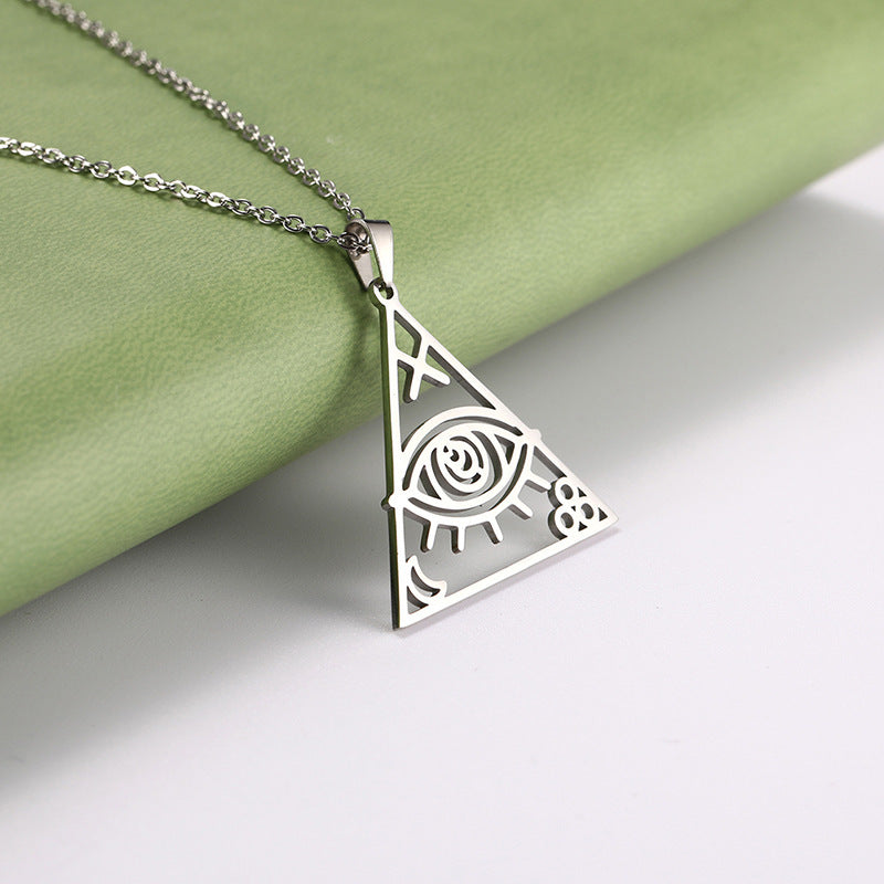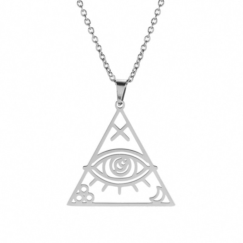 Men's Hip Hop Pyramid Eye Of Horus Triangle Stainless Steel Necklace