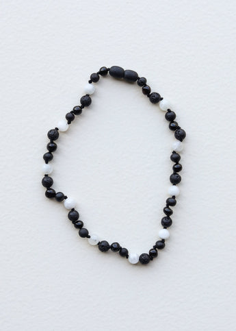 Raw Black Baltic Amber + Moonstone || Necklace