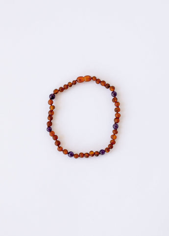Raw Cognac Baltic Amber + Amethyst || Halo Necklace ||