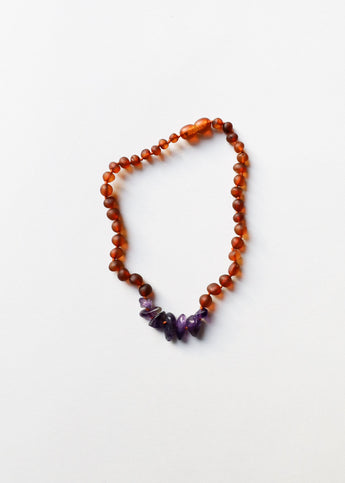 Raw Cognac Baltic Amber + Raw Amethyst || Necklace