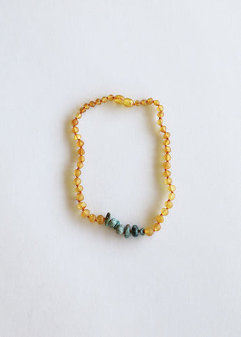 Raw Honey Baltic Amber + Raw Turquoise Jasper || Necklace
