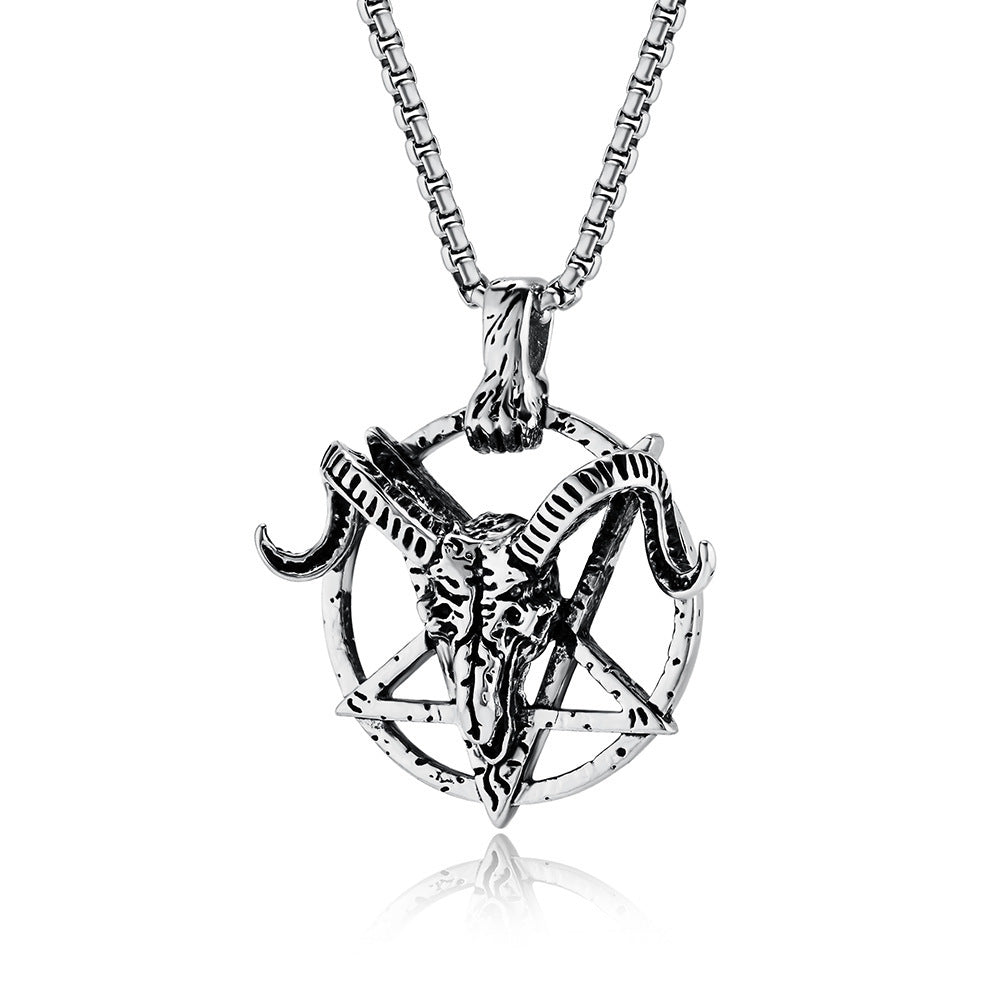Retro Dark Wind Devil Satan Goat Pentagram Titanium Steel Pendant Necklace