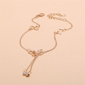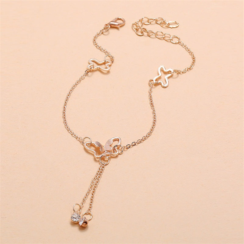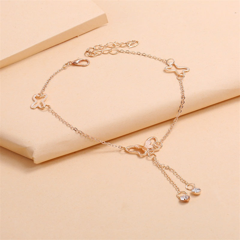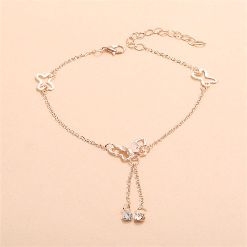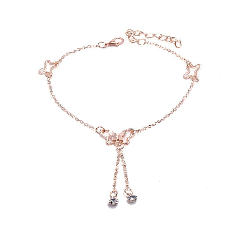 Temperament Butterfly Double Diamond Tassel Rose Gold Anklet