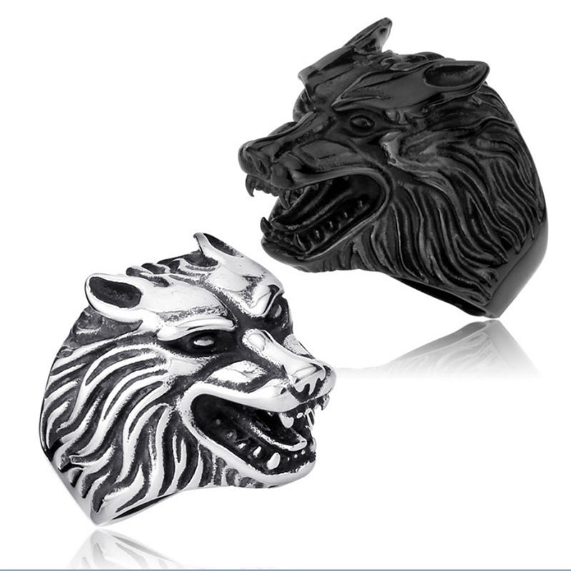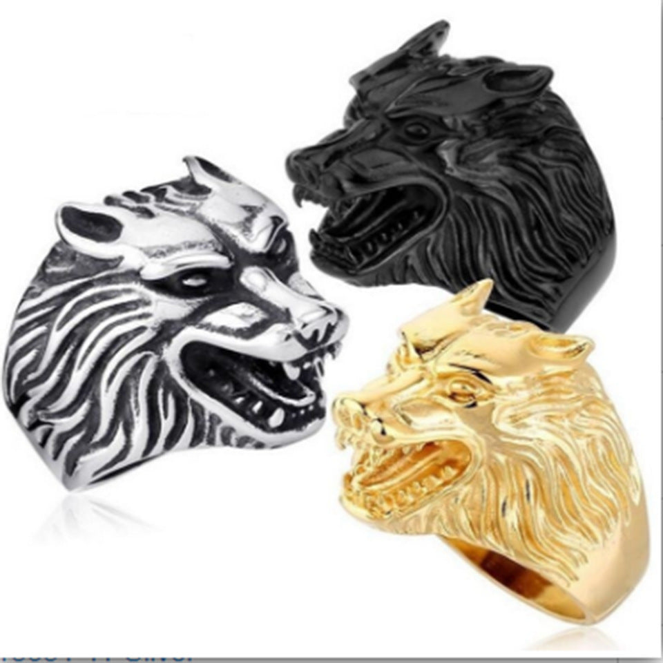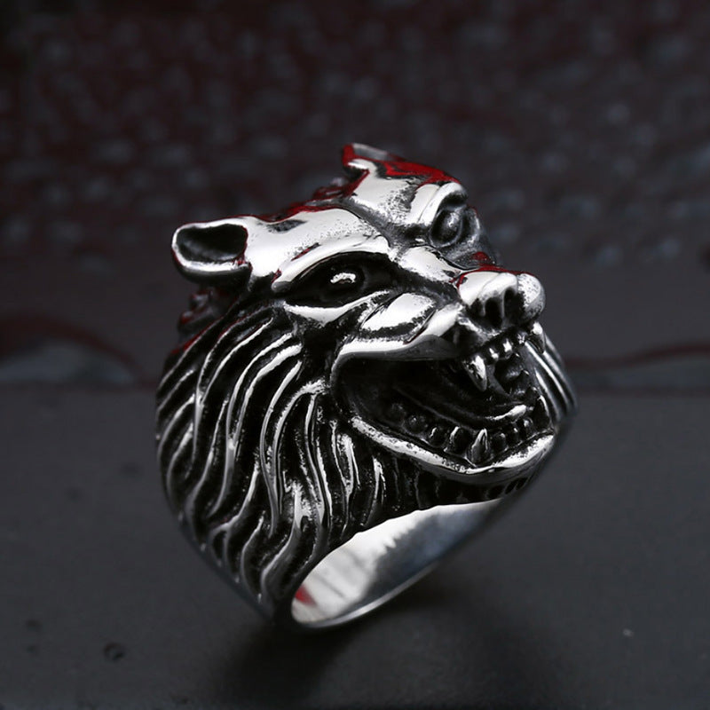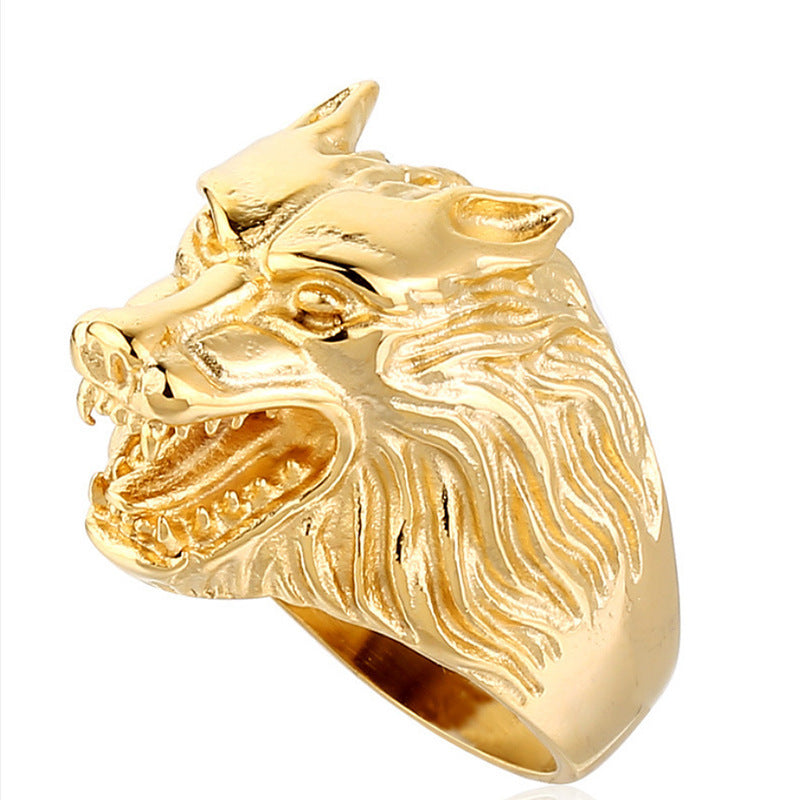Exaggerated Men's Personality Wolf Head Ring