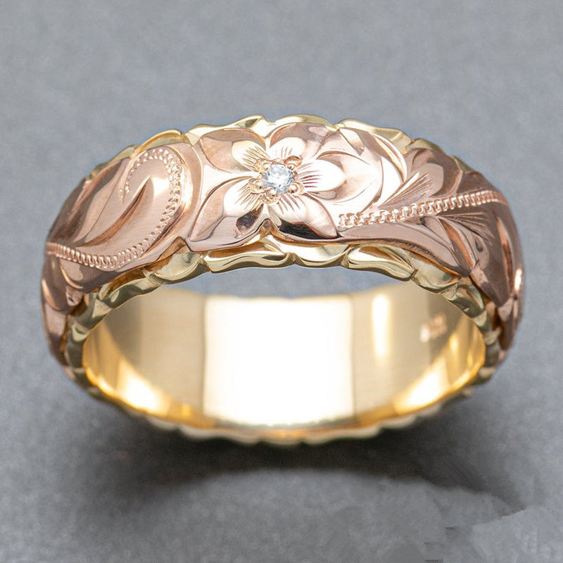 Exquisitely Carved Rose Two-tone Ladies Ring