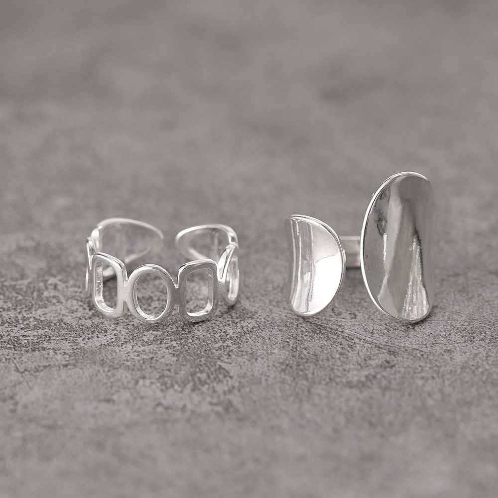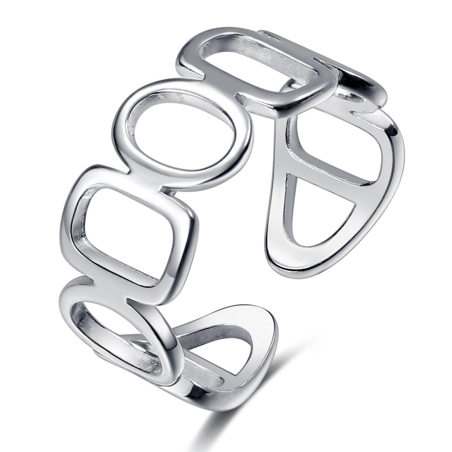 Female 925 Silver Retro Hollow Geometric Ring Jewelry