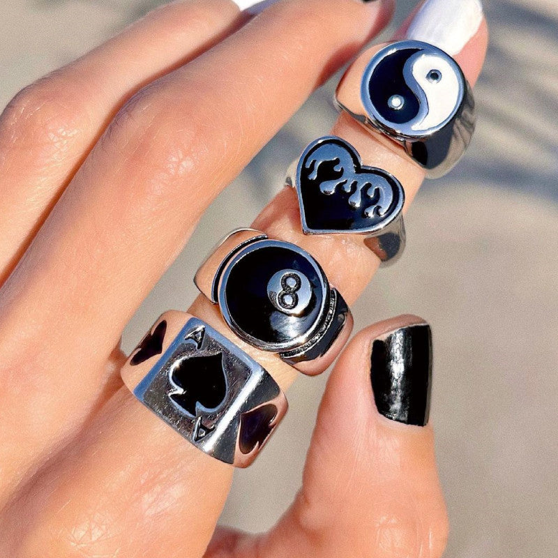 Ins Copper Love Flame Black And White Yin And Yang Ring