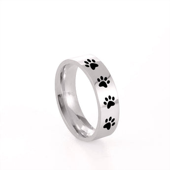 Laser Engraved Dog Paw Stainless Steel Ring