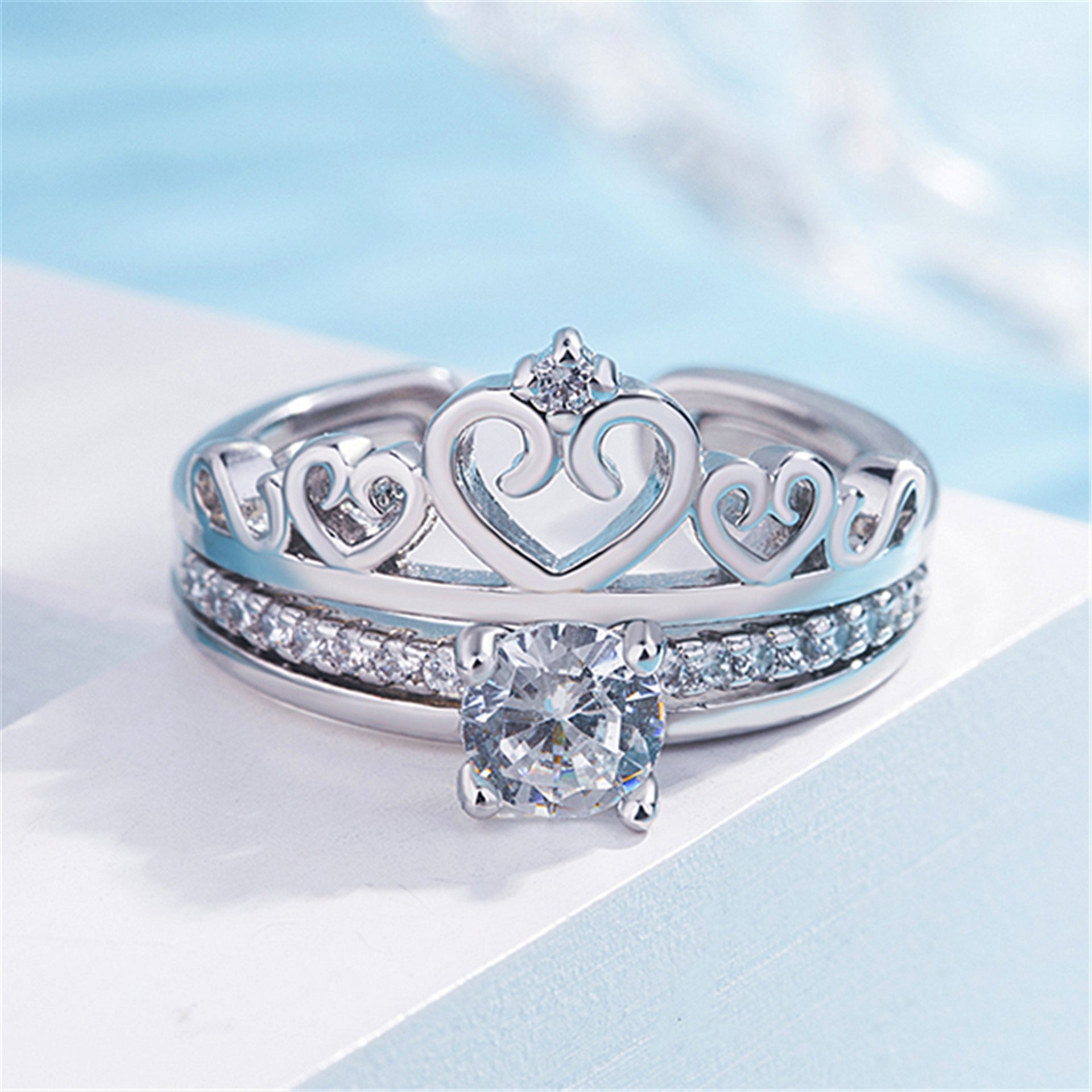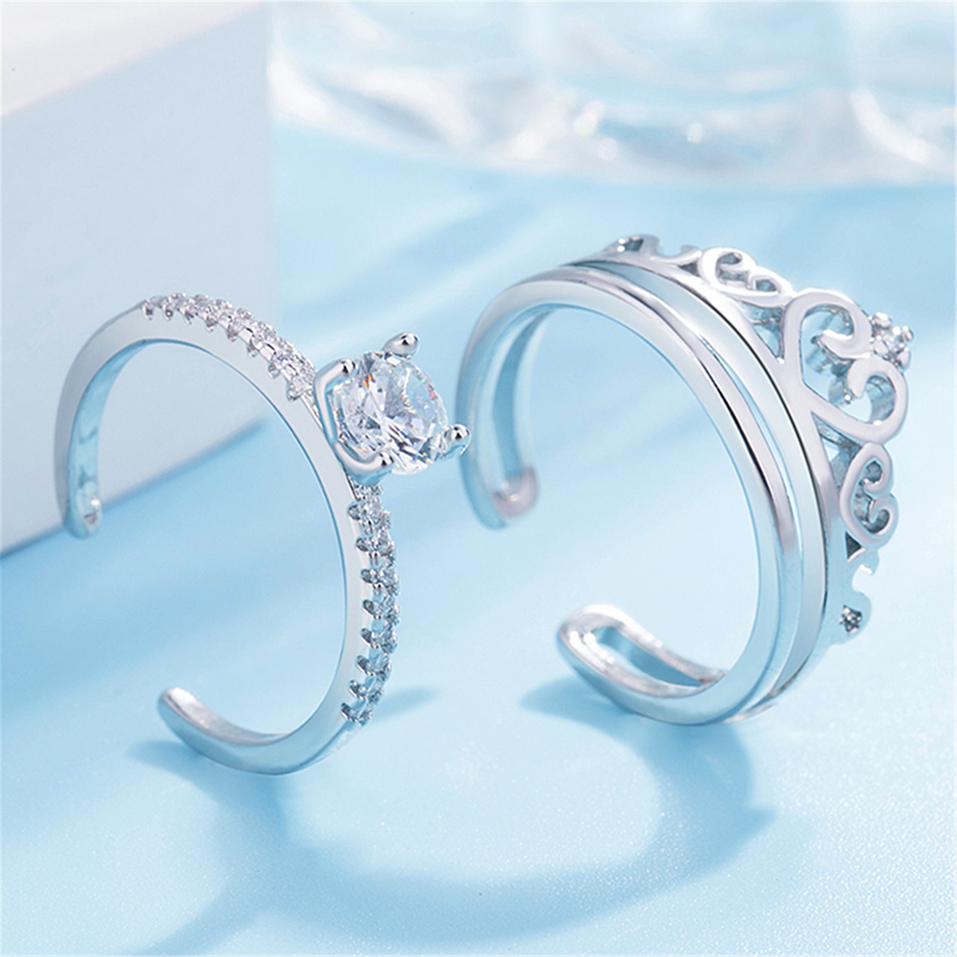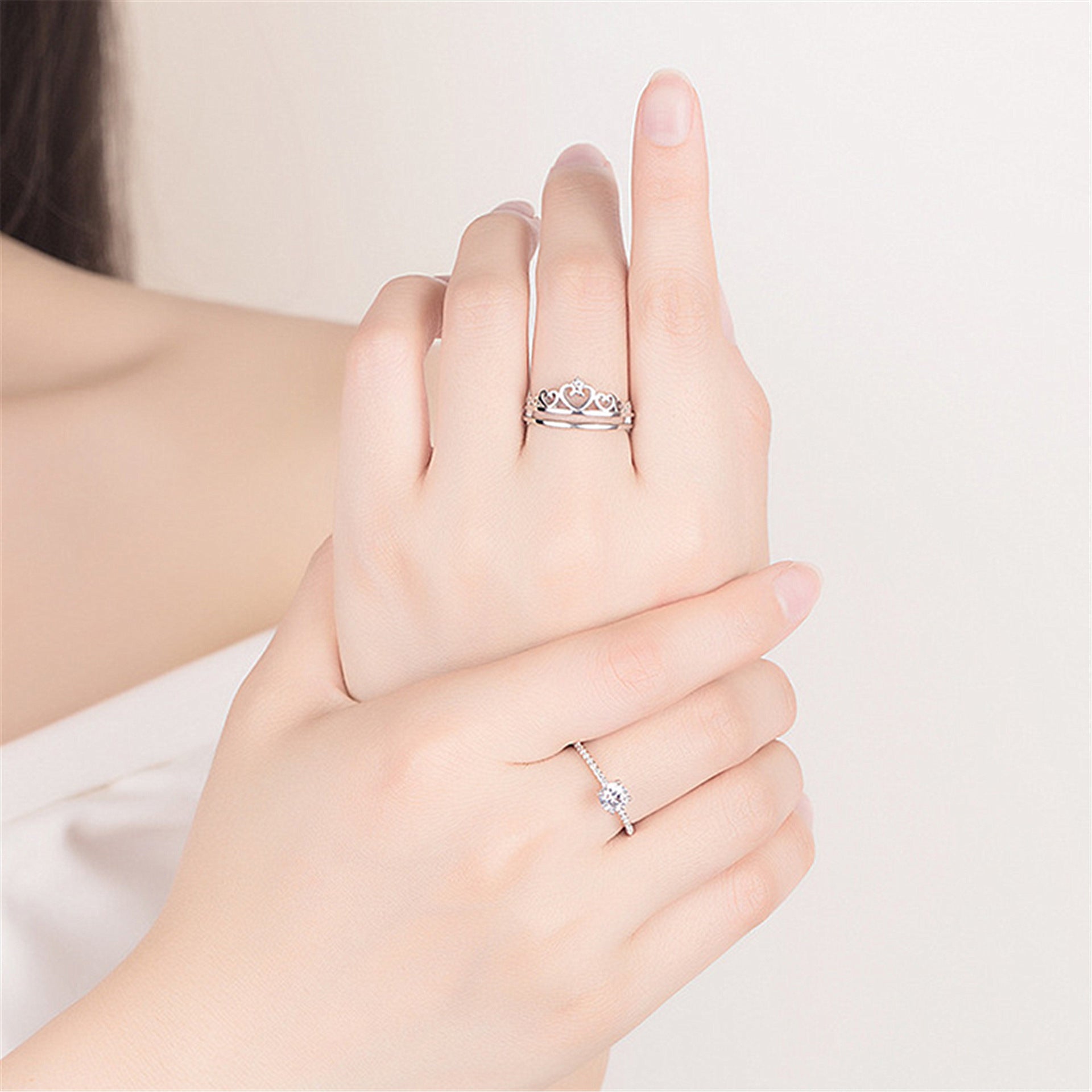 Personalized Set Crown Silver Ring Two-in-one Combination Princess Ring