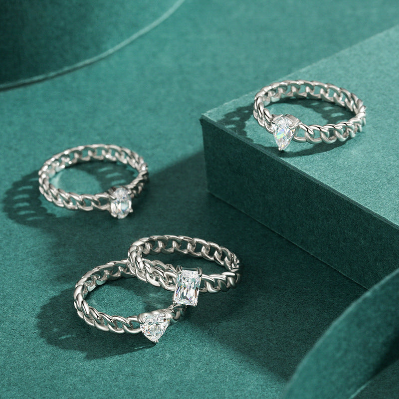 S925 Silver Niche Design Chain Drop Ring