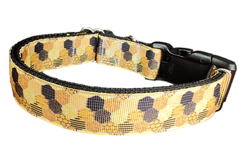 Patchwork Beehive dog collar on nylon webbing