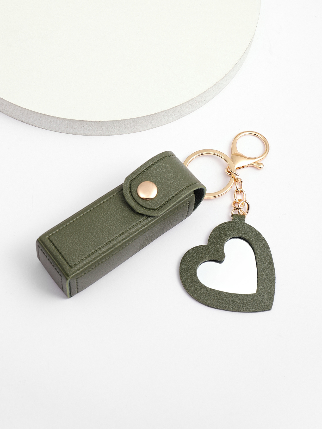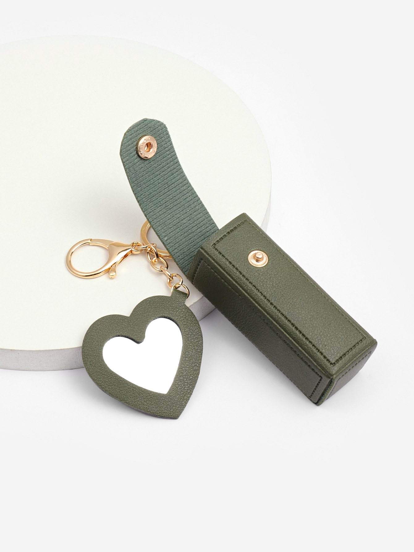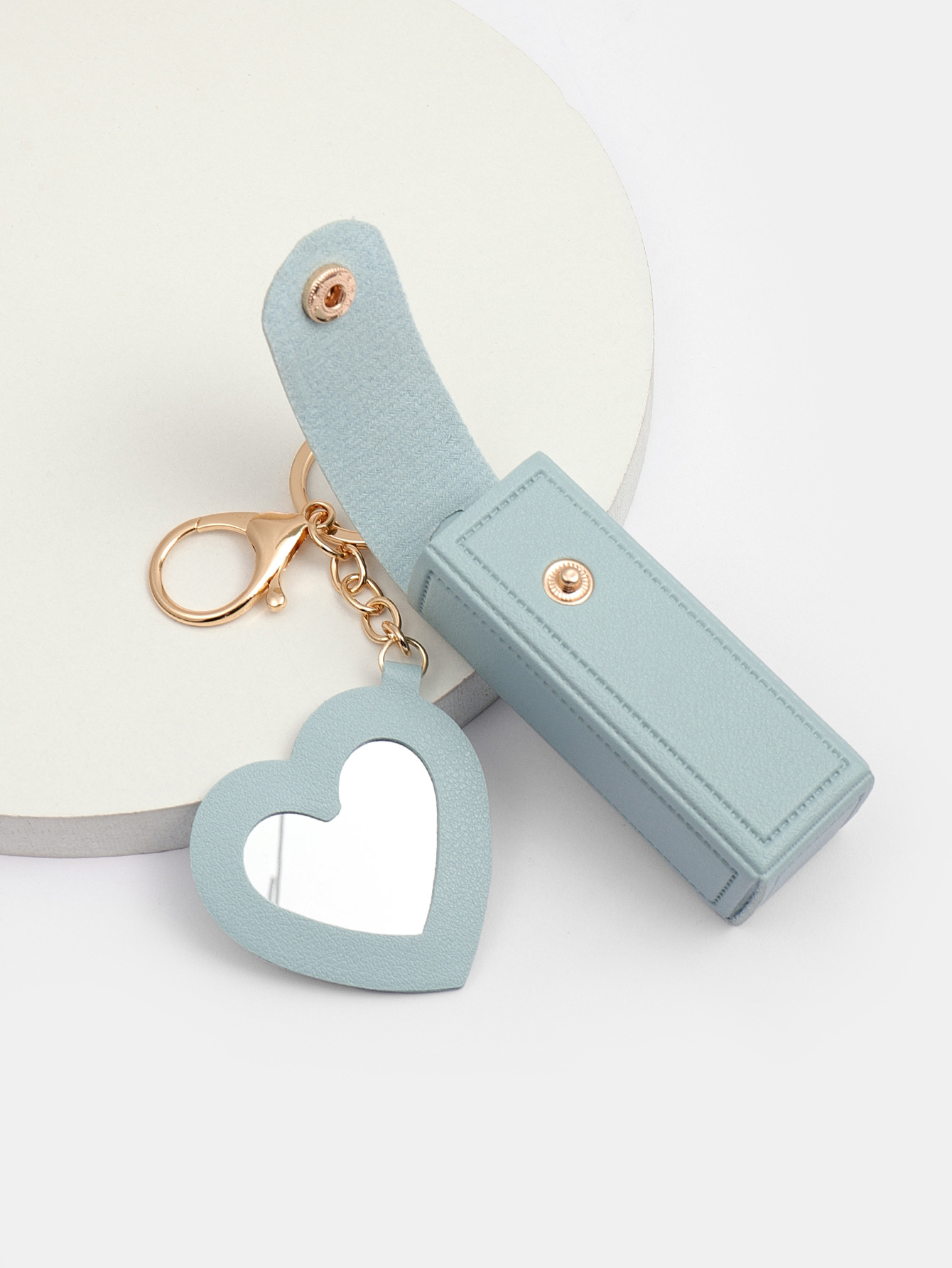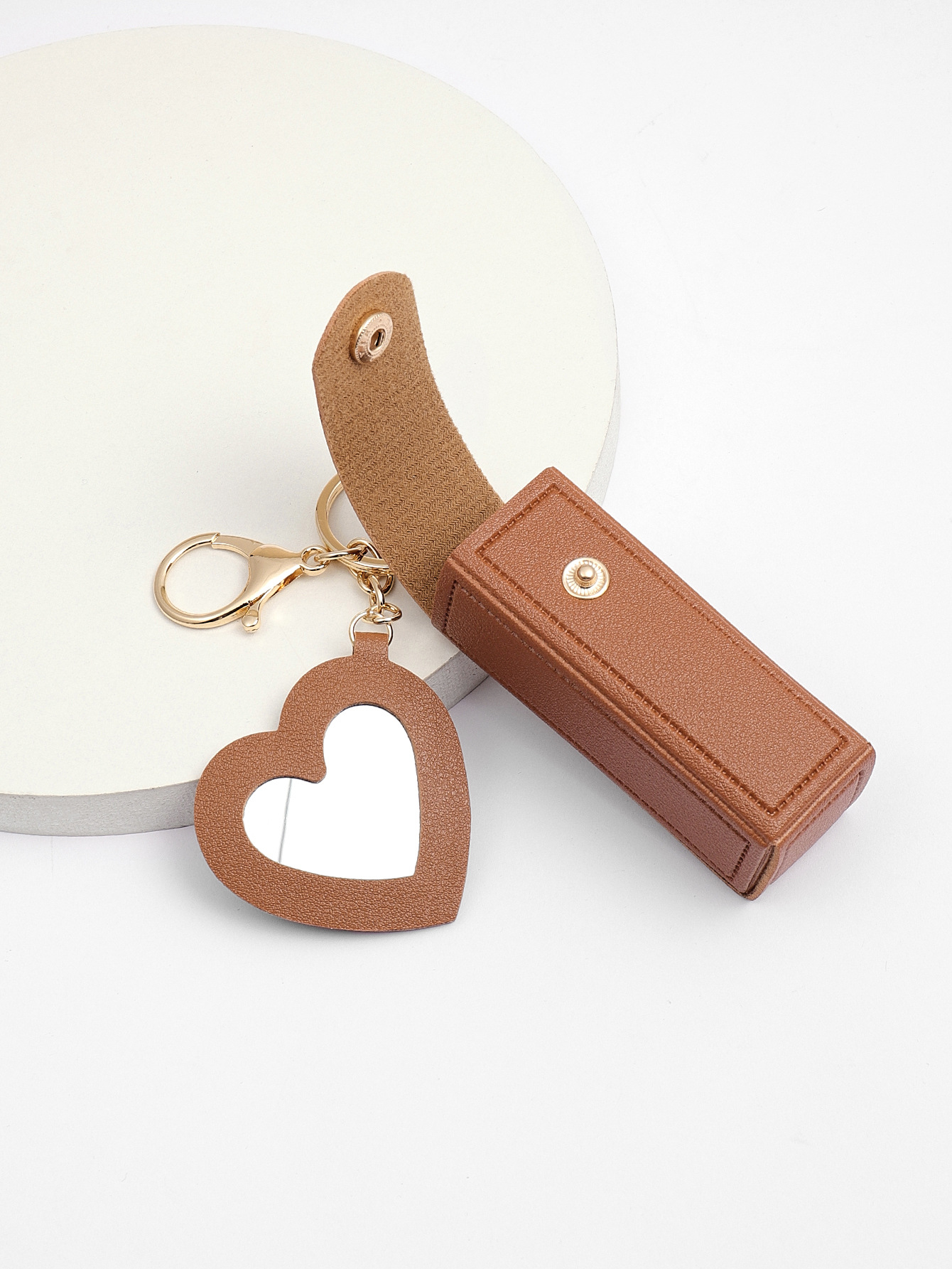Glass Mirror Keychain Pendant Cross-border Pu Love Lipstick Pack