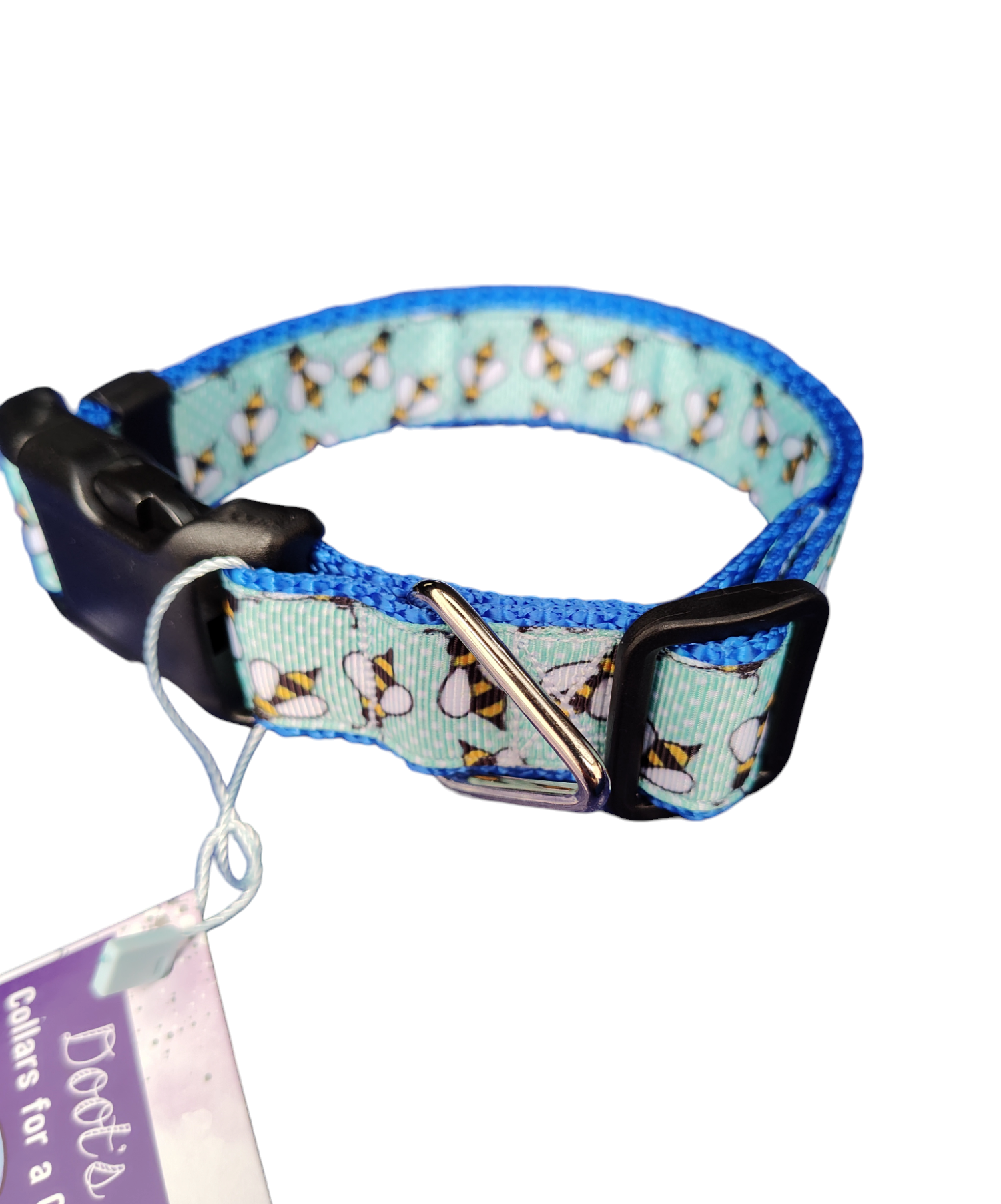 Blue Bees Blue Nylon Dog Collar MD, LG, XL, Leash