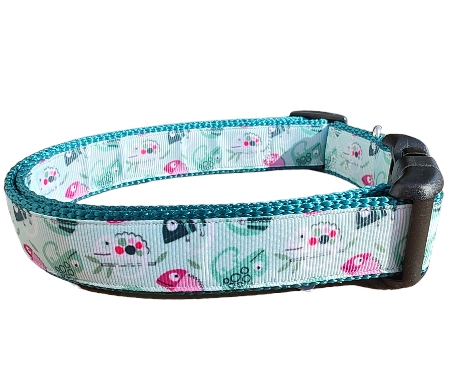 Heavy Duty Chameleon dog collar on emerald green super heavy nylon webbing