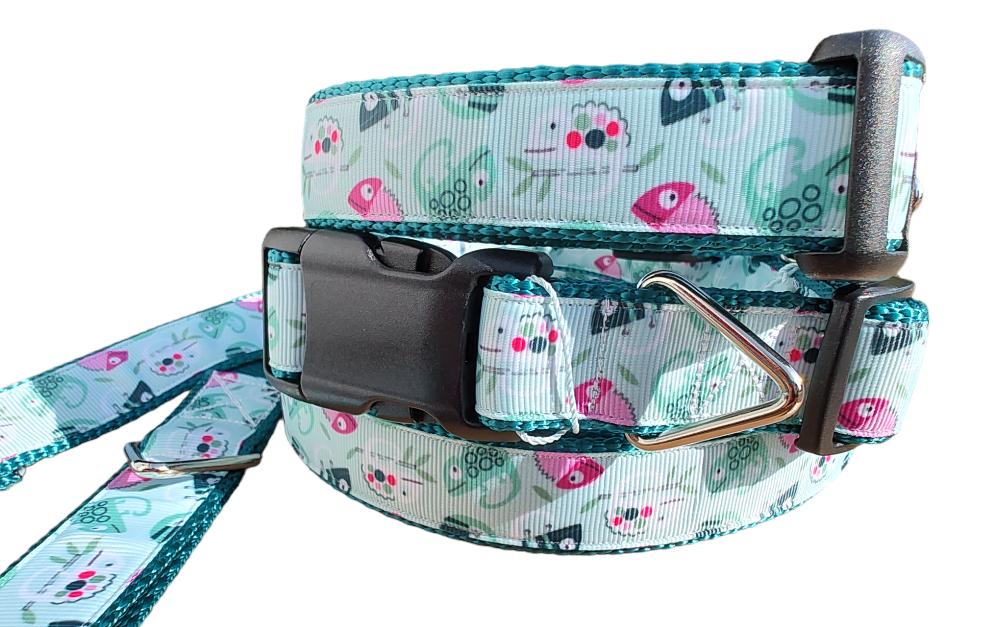 - Welded triangle ring for hooking leash and tags is stronger and more reliable than standard D ring