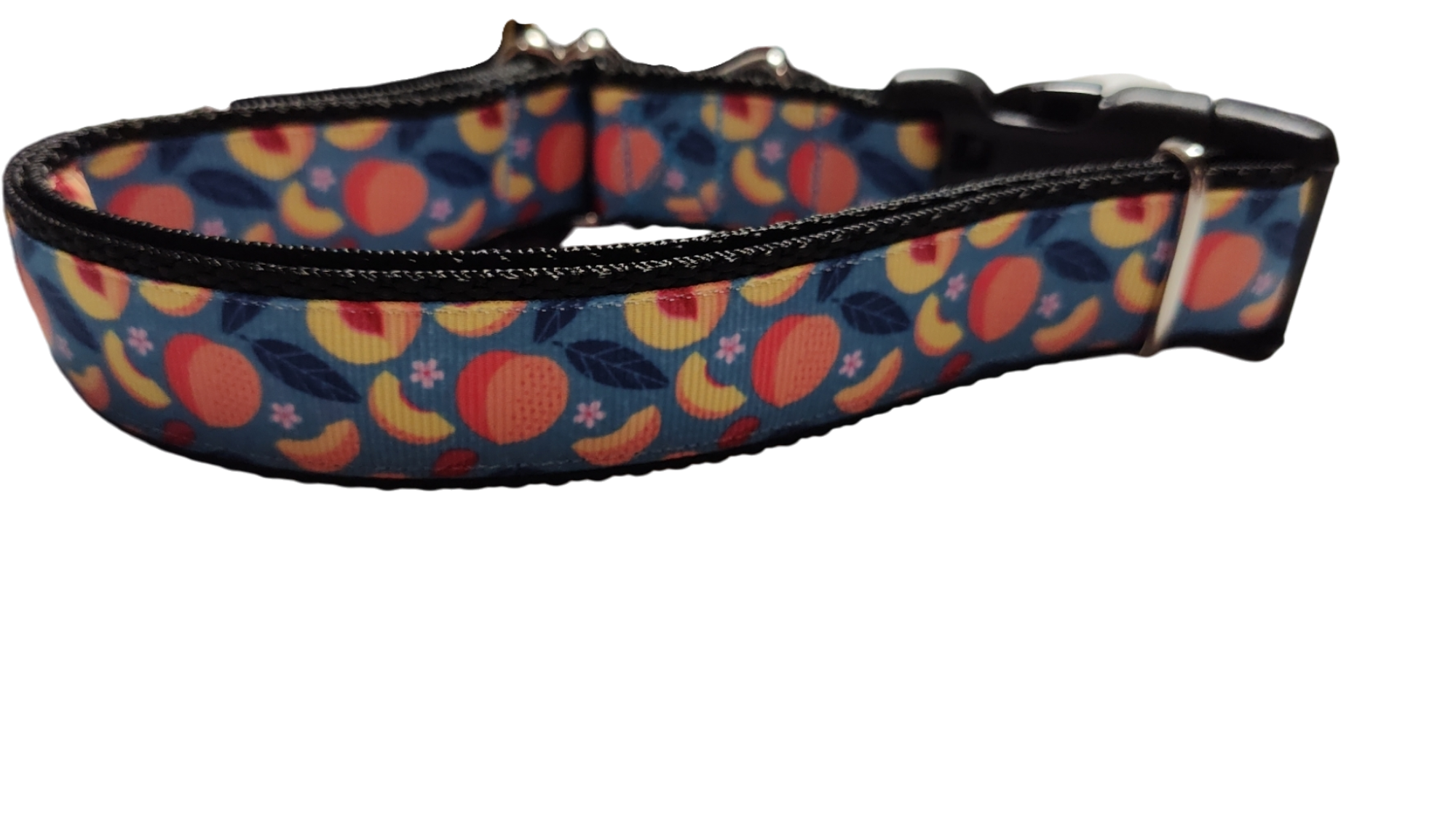 Peach Blossoms dog collar on nylon webbing