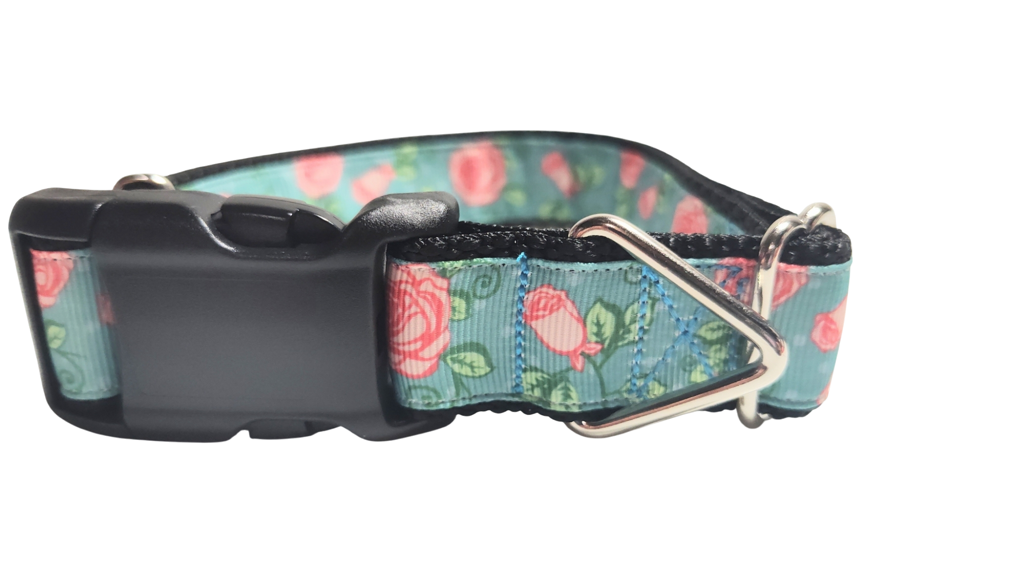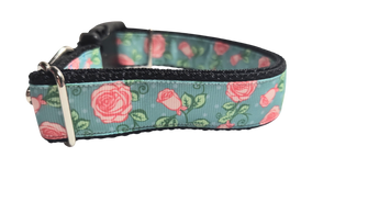 Roses on Blue Nylon Dog Collar