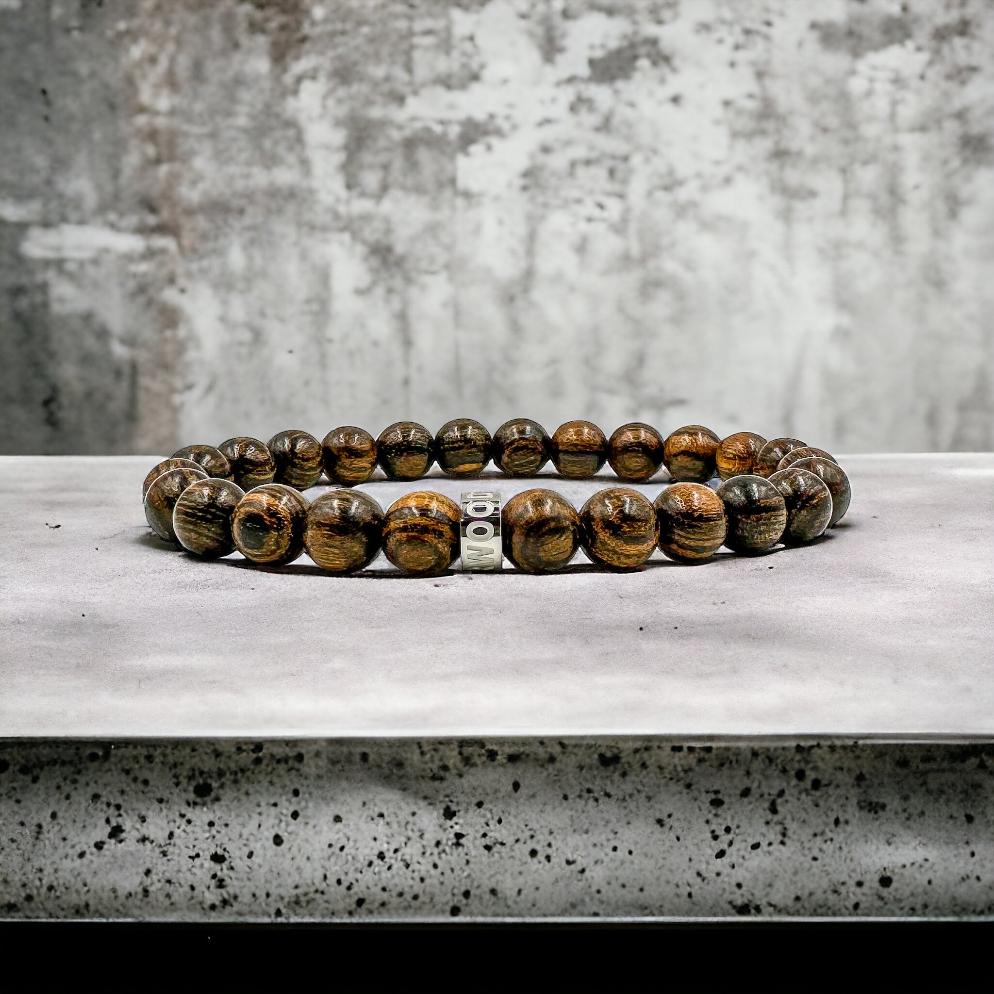 Tigerwood is all edge and texture — made from striking Bocote Wood with dark streaks and rocky contrast. It’s a bracelet for the cliffs, the fog, and the fearless.