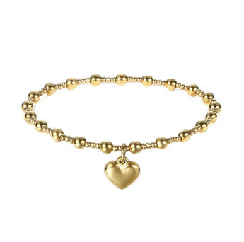 Classic Beaded Puffed Heart Waterproof Non-Tarnish Bracelets
