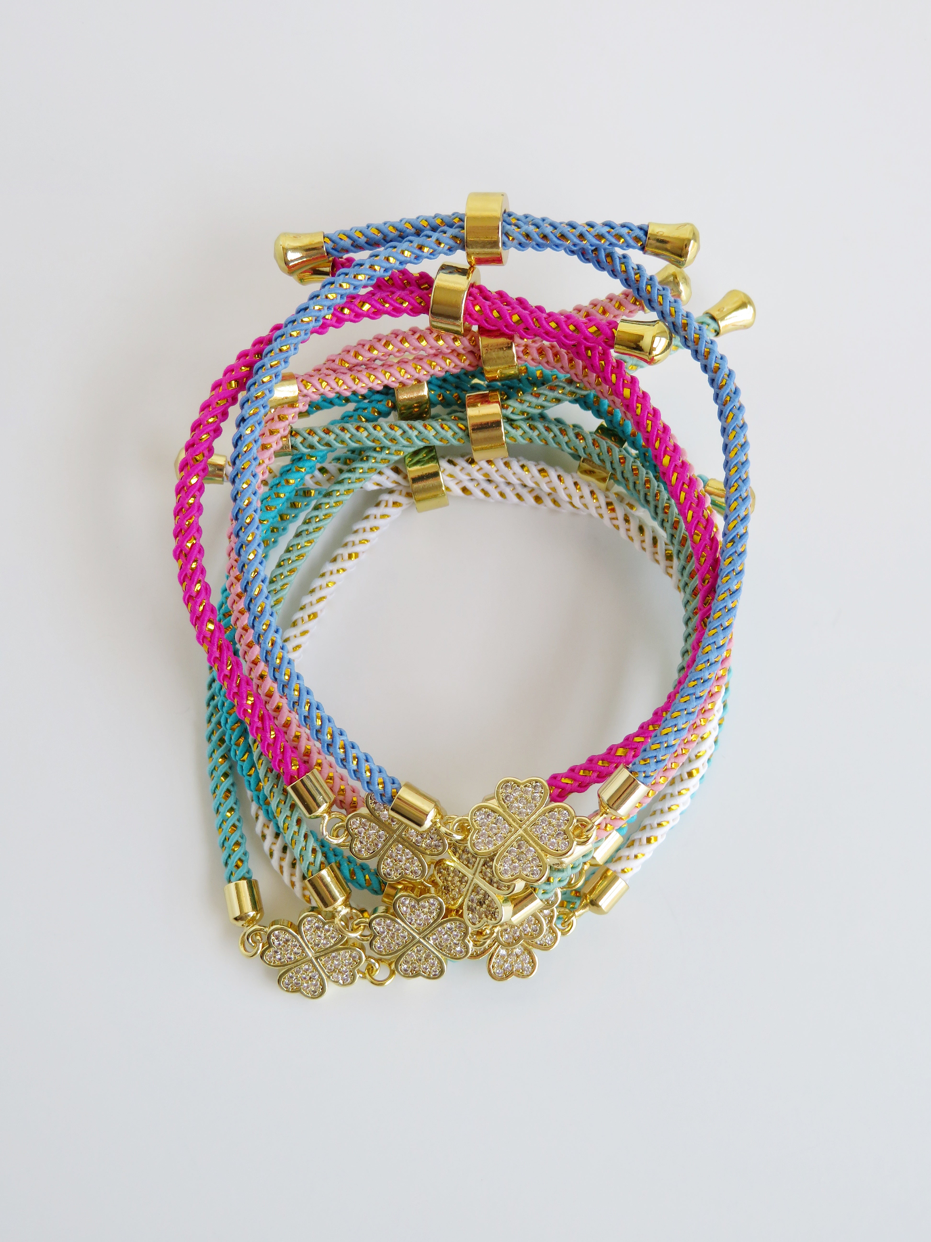 Heart Clover Bracelet - Adjustable Braided Cord