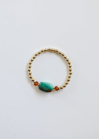 Natural Turquoise + Baltic Amber || 14K Gold Filled || Adult Stretch Bracelet