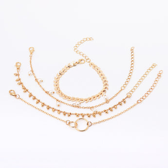 Simple Geometric Circle Wheat Ear Pearl Pendant 4-piece Set Bracelet