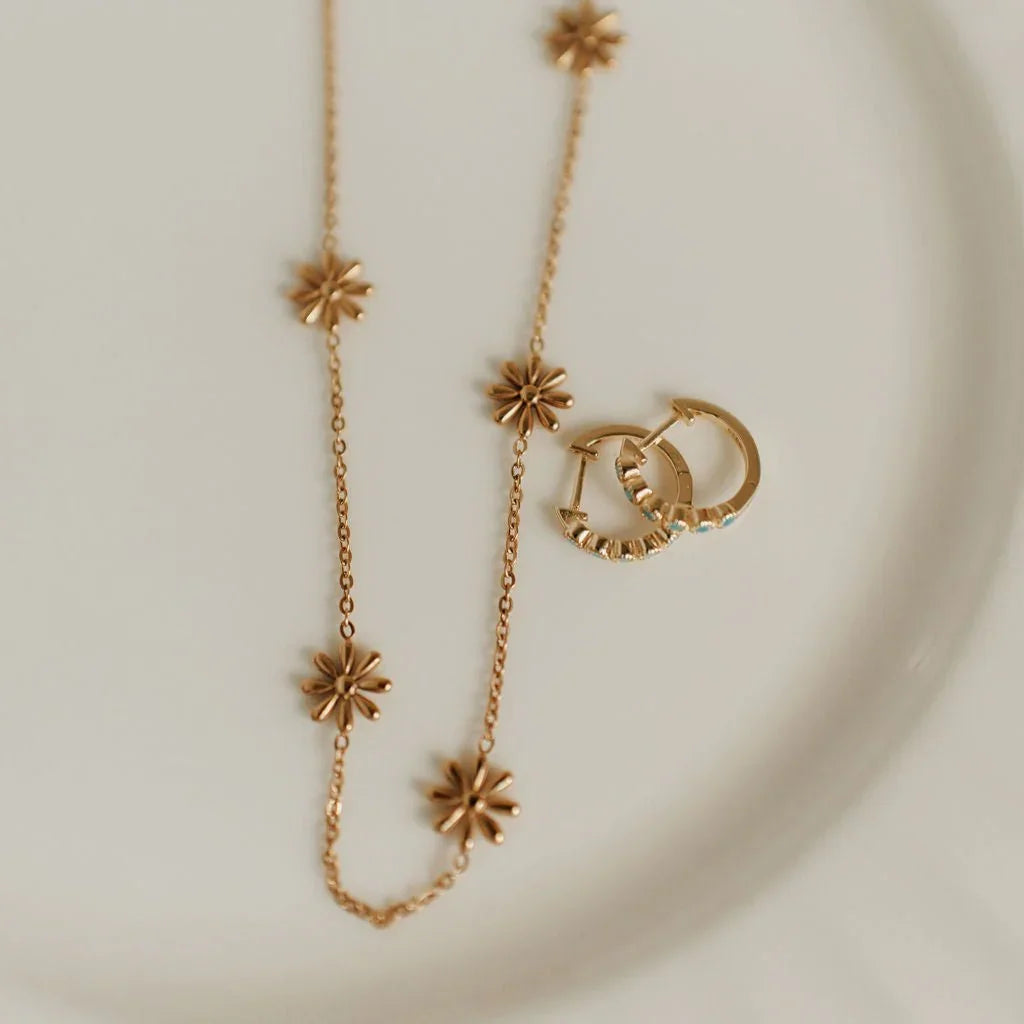 This season's cutest new accessory is here: The Anna Floral Necklace! Made of waterproof gold covered stainless steel, this necklace is sure to be your new fave.