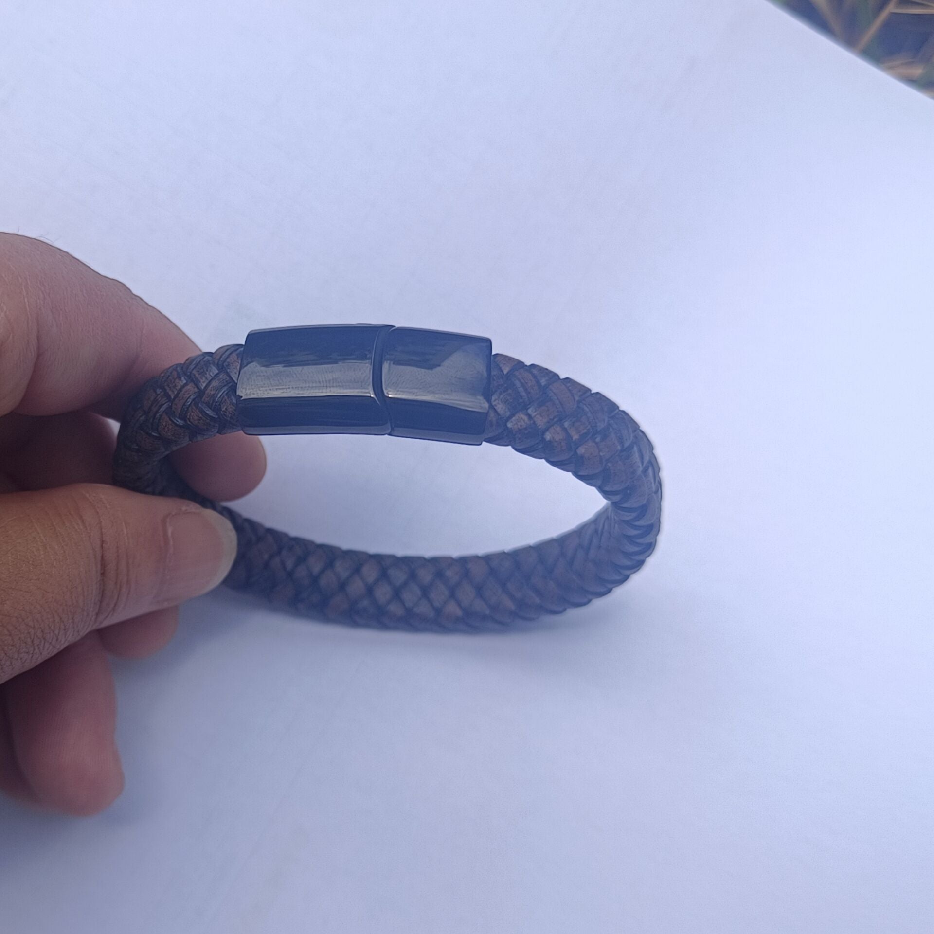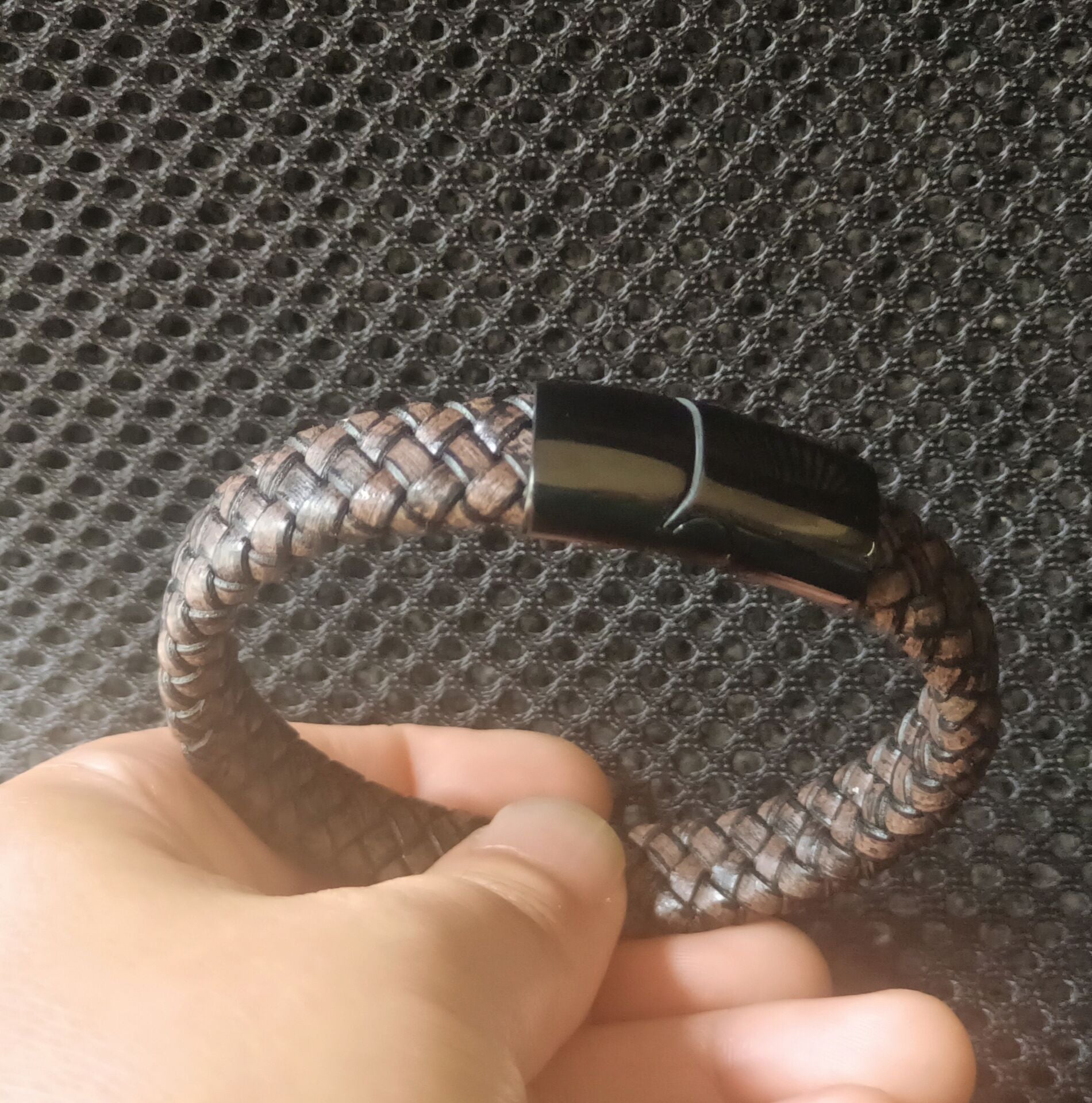 European And American Magnetic Snap Leather Rope Men's Bracelet PU Leather Braided Chain